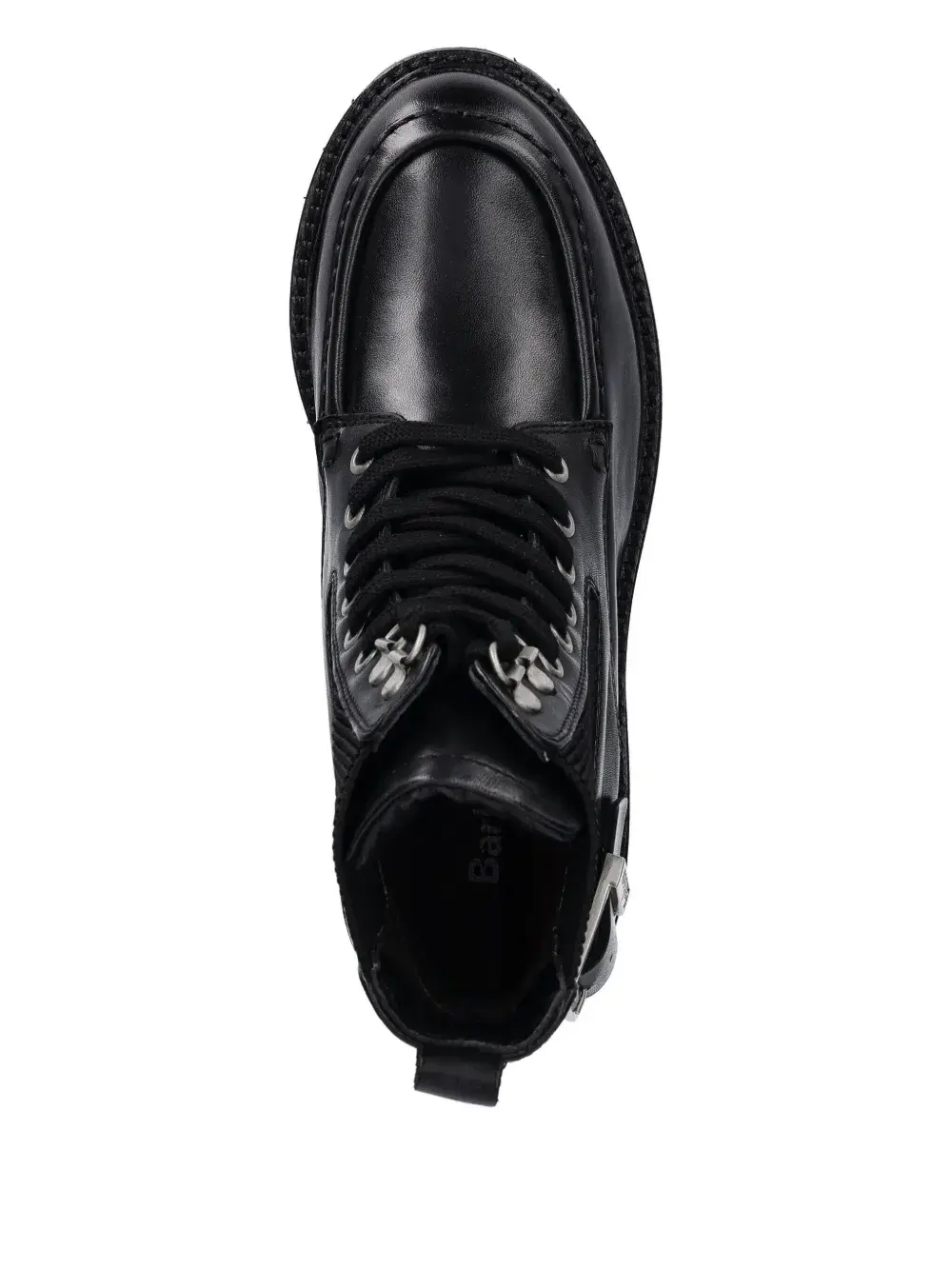черные, боковая пряжка, шнуровка спереди, петля для надевания, рельефная резиновая подошва, фурнитура серебристого оттенка