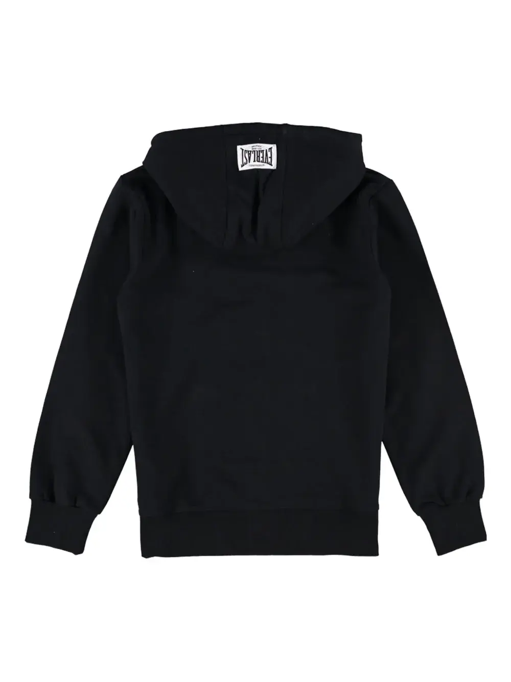 чёрный, застёжка-молния спереди, накладной карман-кенгуру, капюшон, длинные рукава, трикотажные манжеты