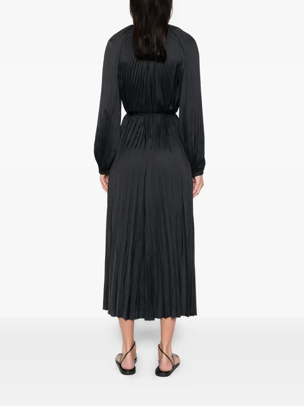 черный плиссированный дизайн, длинные рукава с завязками, круглый вырез