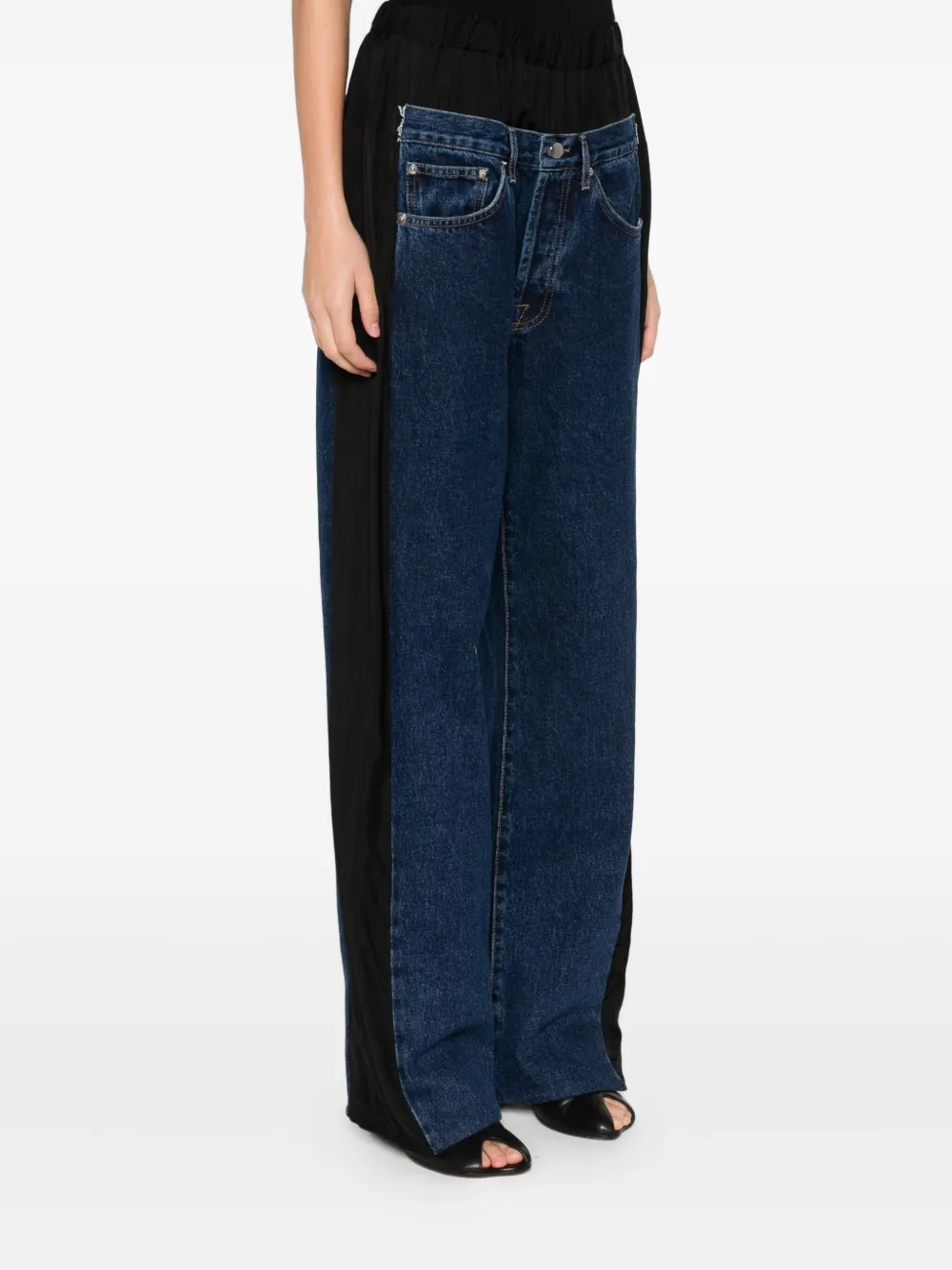 чёрные тёмные джинсы с панельным дизайном, пятью карманами и застёжкой на пуговицы