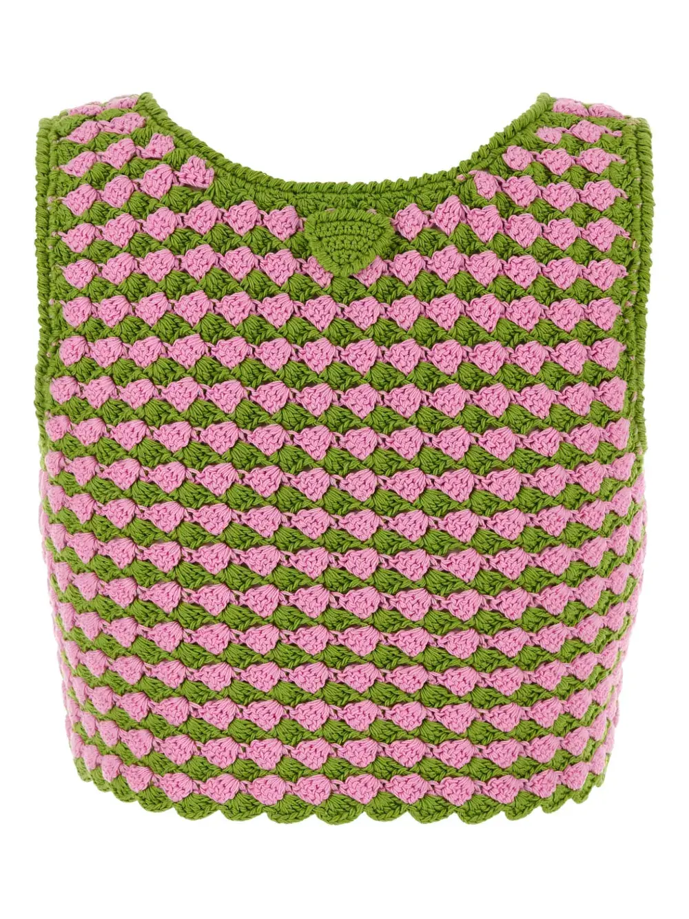 фисташково-зеленый и розовый вязаный крючком топ без рукавов с круглым вырезом и волнистым краем