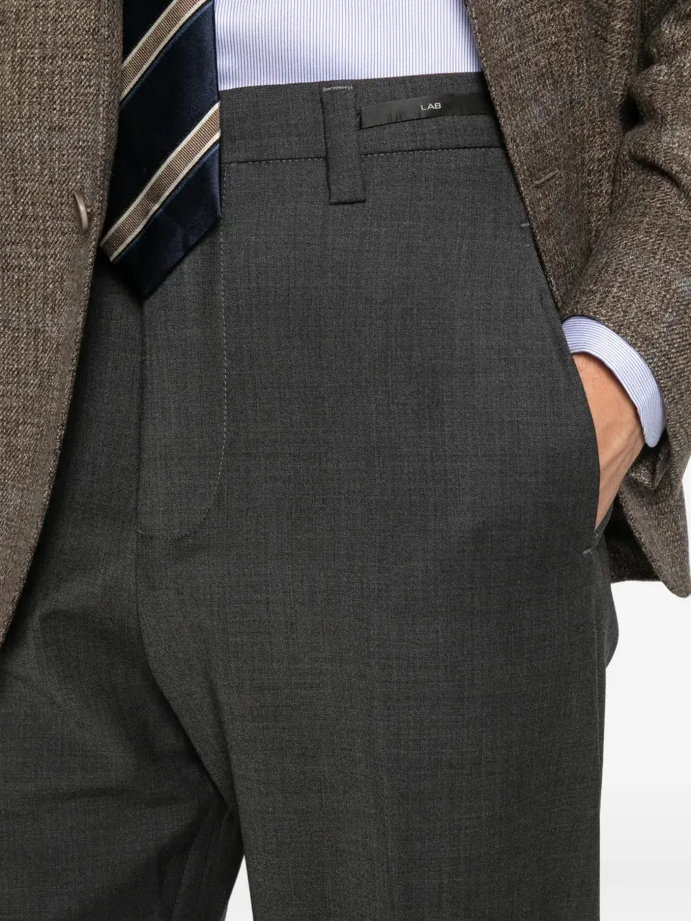 серые шлевки для ремня, боковые карманы, задние карманы