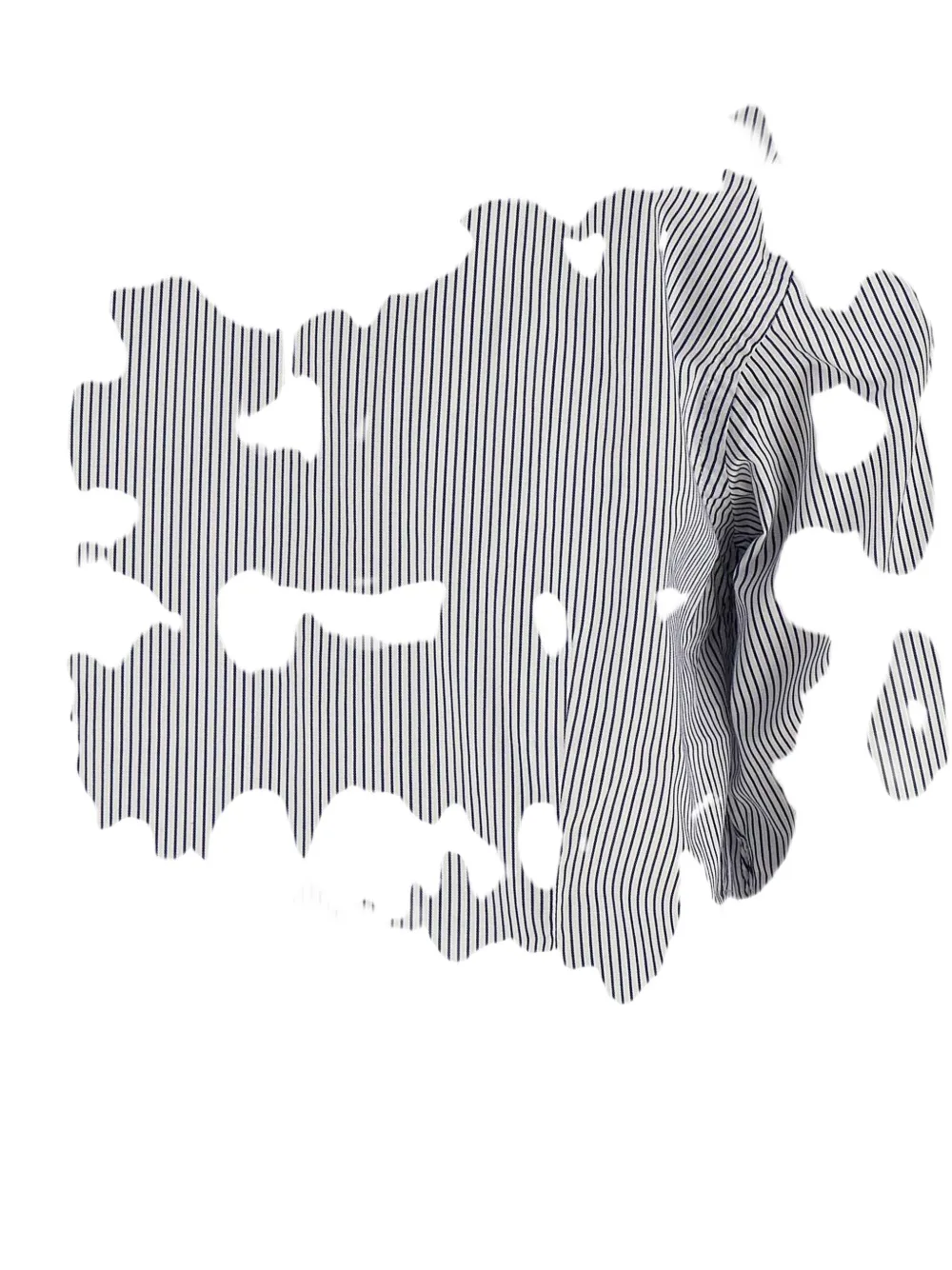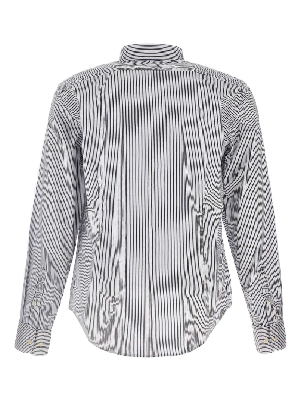 голубая и белая рубашка в полоску с отложным воротником на пуговицах, застежкой на пуговицах, манжетами на пуговицах и вышитым логотипом