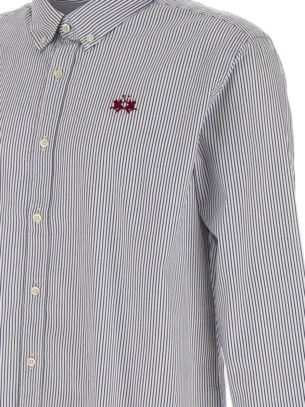 Рубашка в полоску с вышитым логотипом La Martina, белый