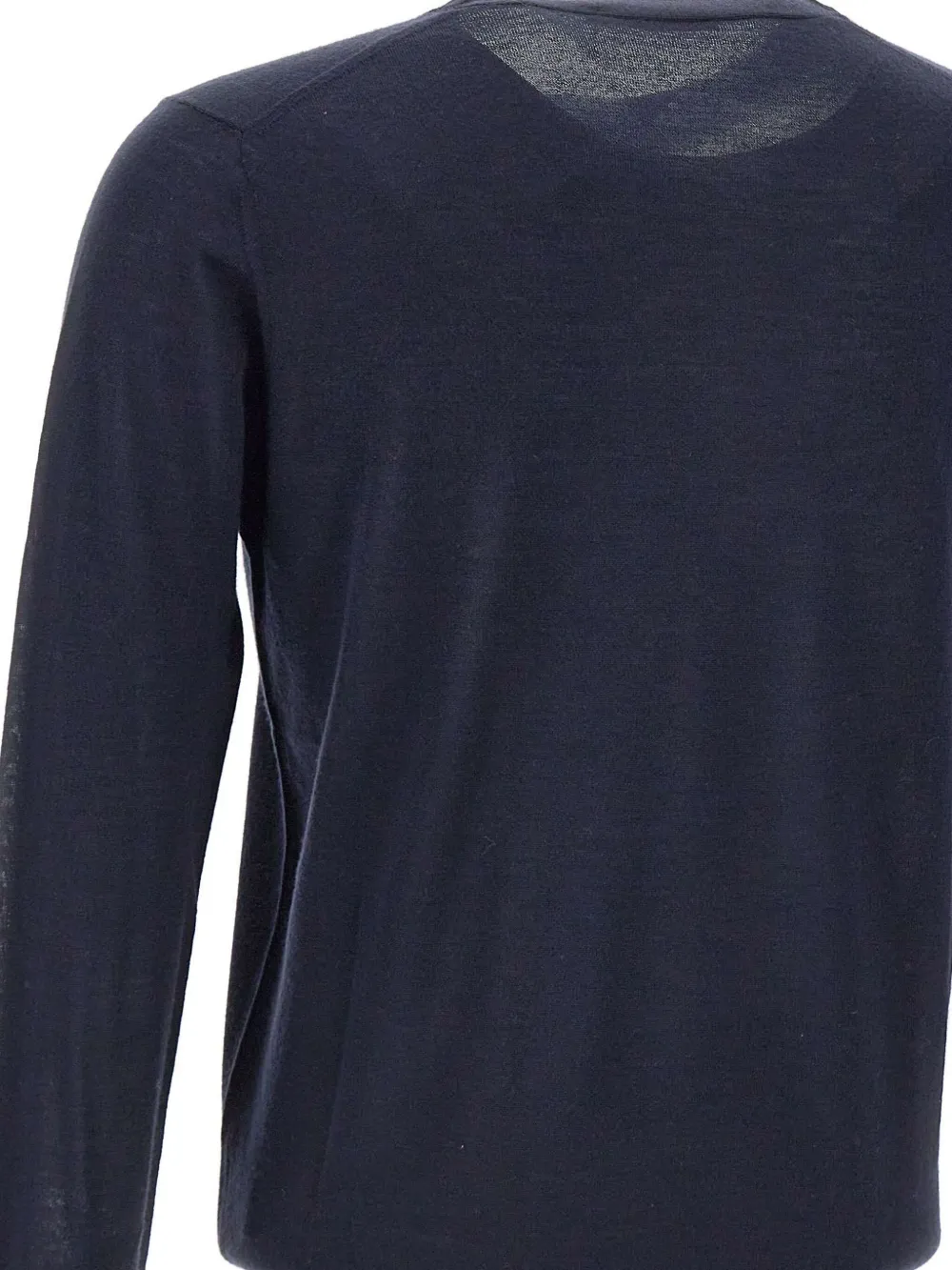 тёмно-синий джемпер с круглым вырезом, длинными рукавами, ребристыми краями, из шерстяного трикотажа