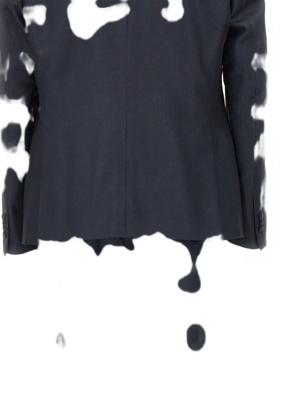 синий жаккард с микроточечным и цветочным узором, передние клапанные карманы, манжеты на пуговицах