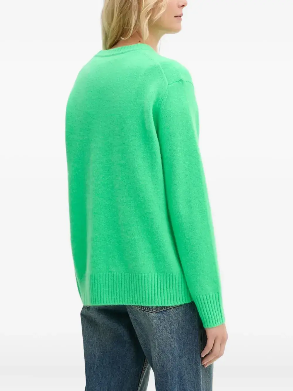 утопичный зелёный круглый вырез, ребристый низ, ребристые манжеты, длинные рукава, вышитая деталь
