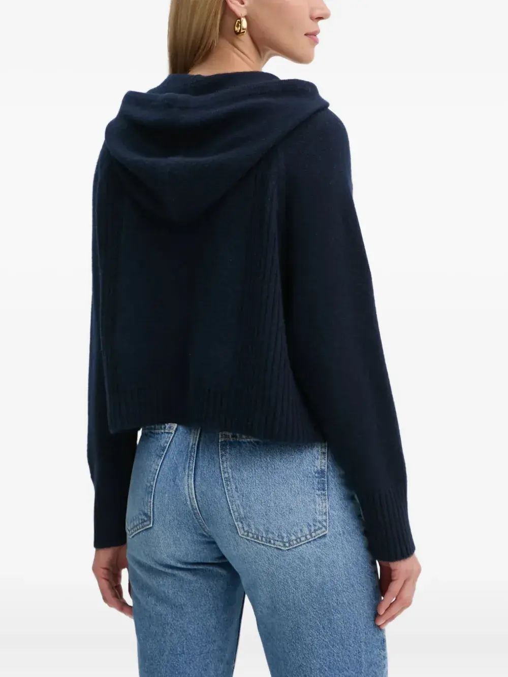 темно-синий кашемир, ребристые детали, капюшон со шнурком, длинные рукава
