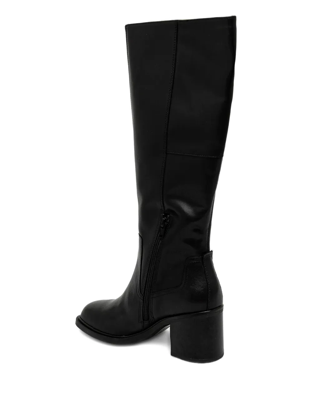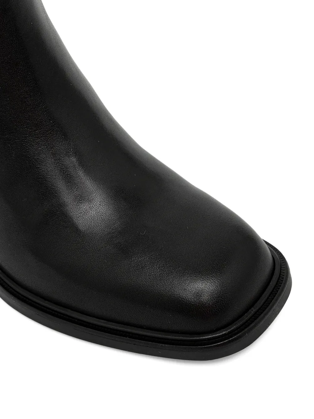 черные ботфорты на квадратном каблуке с квадратным мысом и боковой молнией