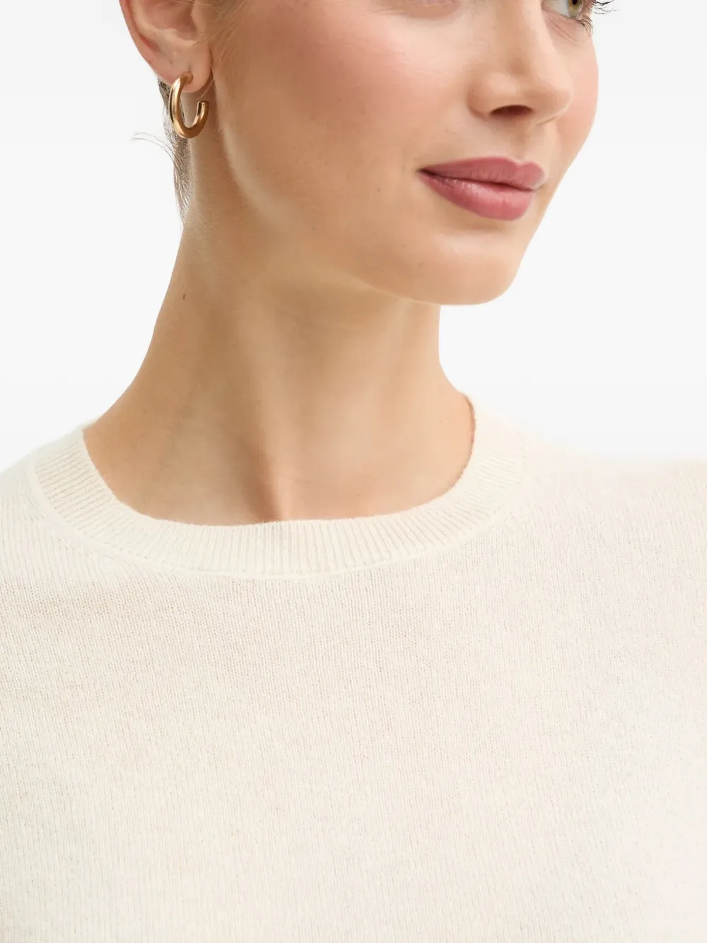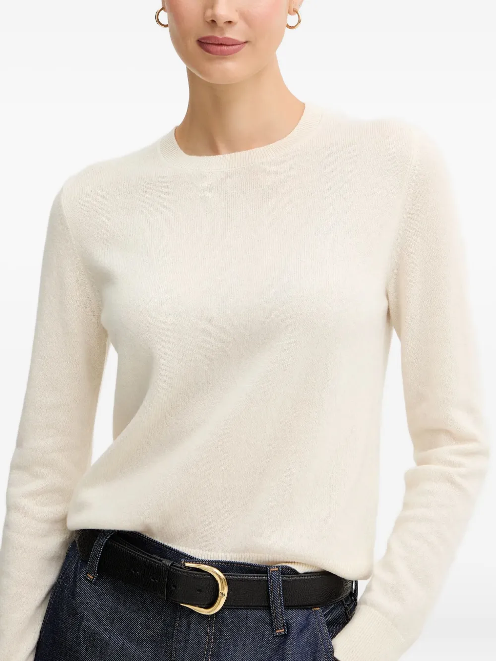 футболка цвета экрю с круглым вырезом, длинными рукавами, ребристым подолом и манжетами