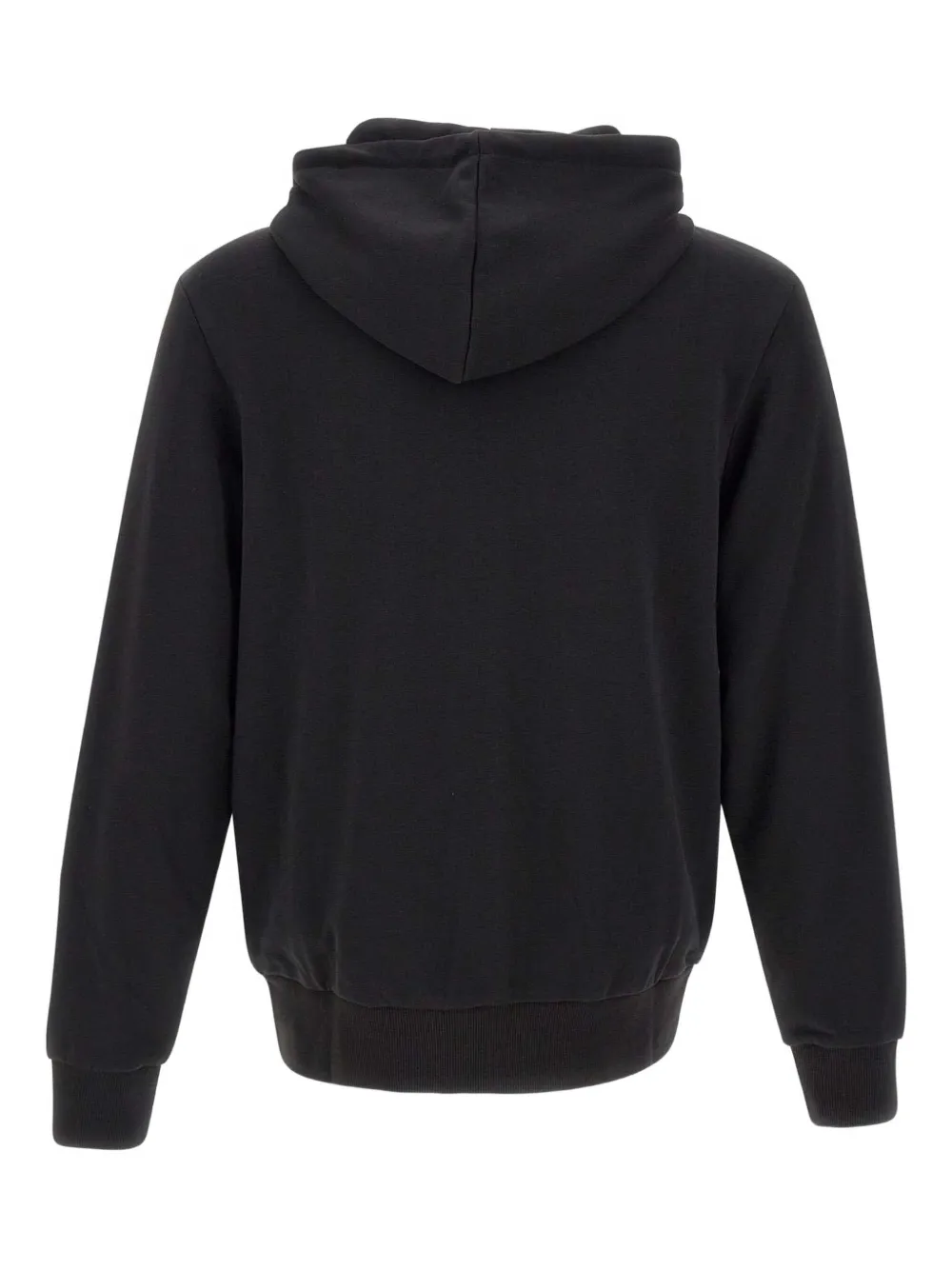 черная толстовка с вышитым логотипом, застежкой-молнией, капюшоном на кулиске и боковыми карманами на молнии