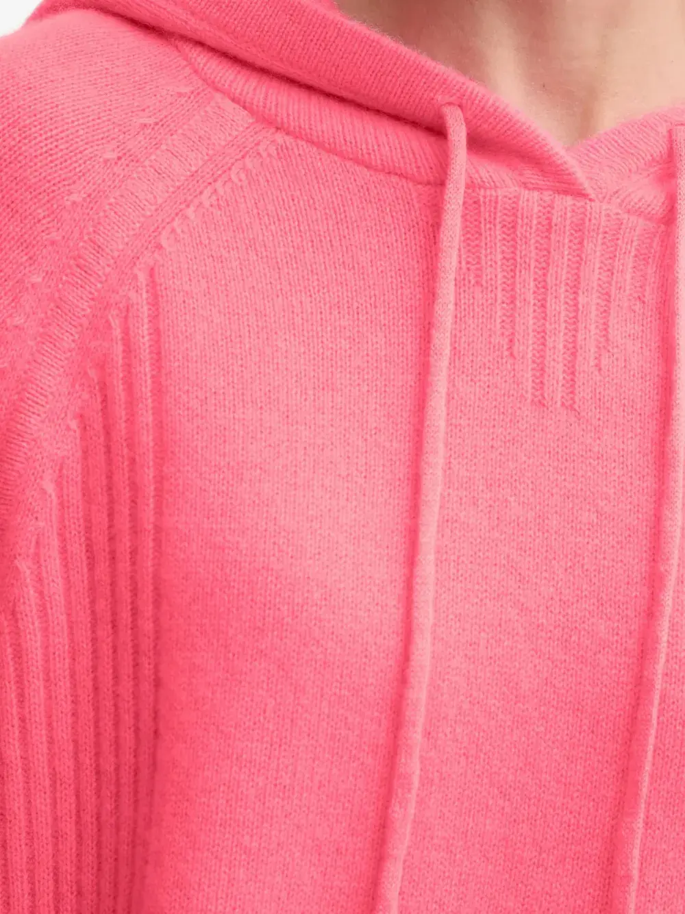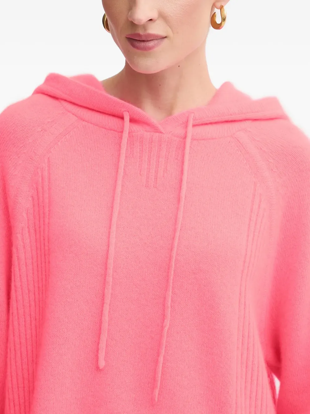 розовая толстовка с ребристыми деталями, капюшоном на шнурке и длинными рукавами