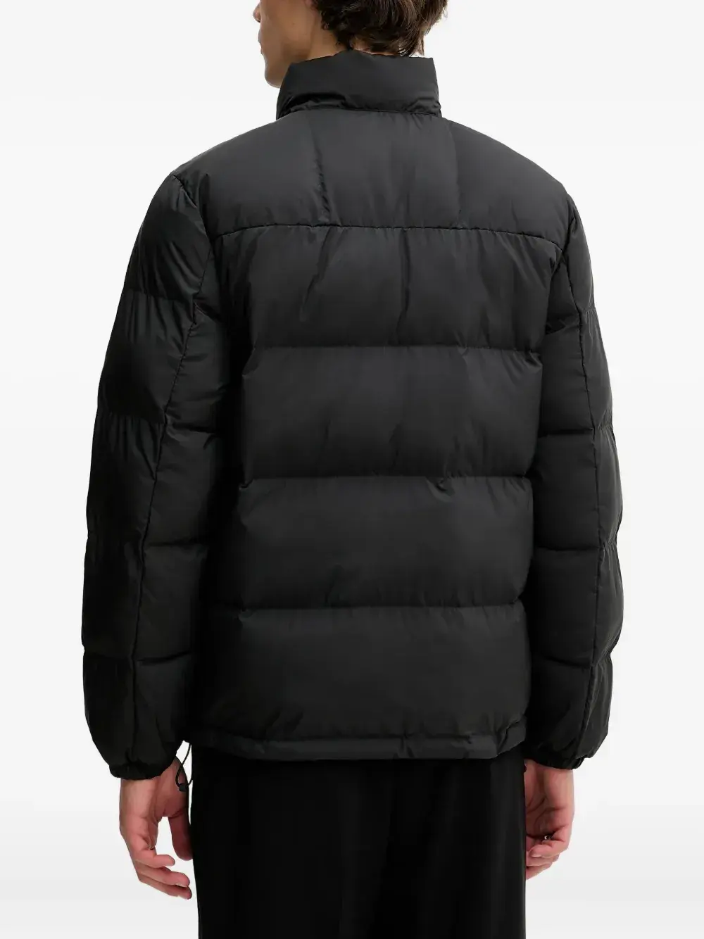 черный цвет, стеганый дизайн, застежка-молния, высокий воротник, нашивка с логотипом, кулиска на подоле