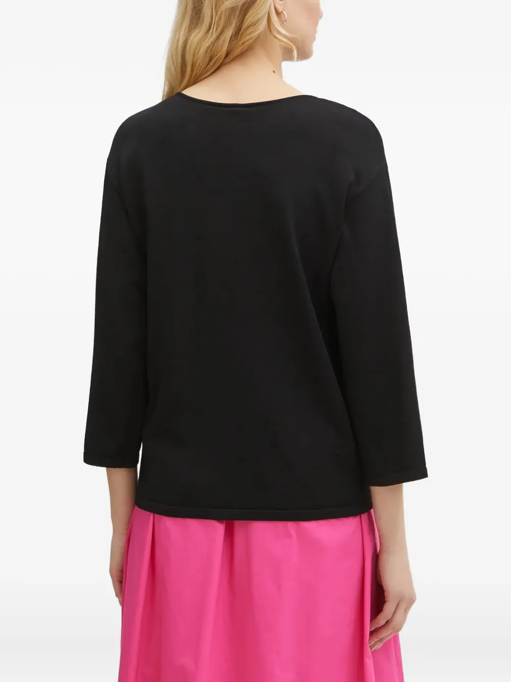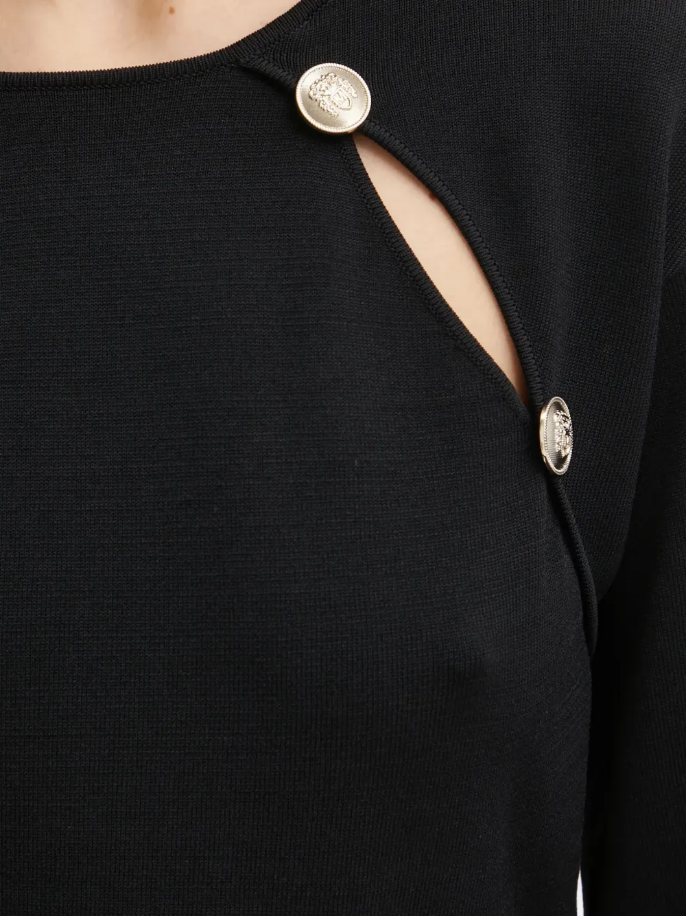черный топ с круглым вырезом, пуговицами, вырезами и рукавами три четверти