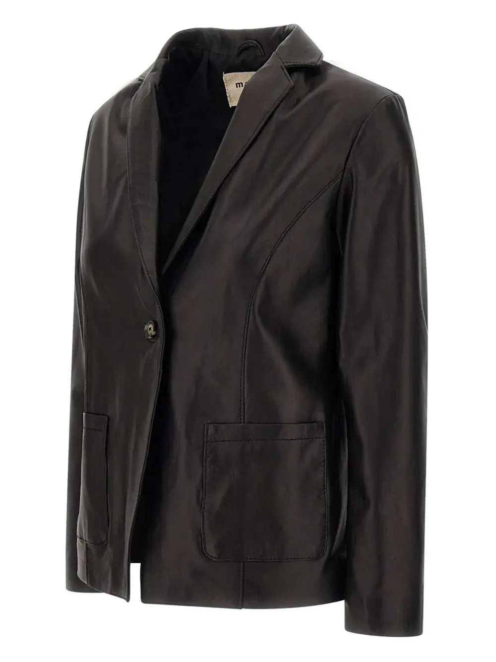 чёрный пиджак с лацканами, застёжкой на одну пуговицу, двумя передними карманами, в классическом стиле, стандартного кроя