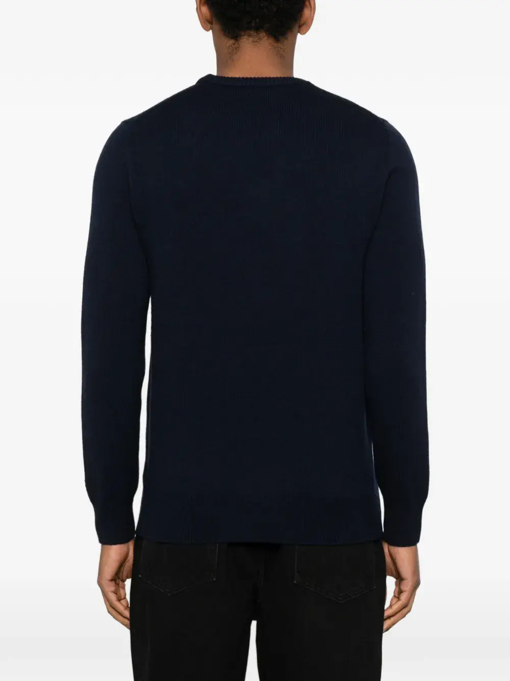 тёмно-синий свитер с круглым вырезом и длинными рукавами