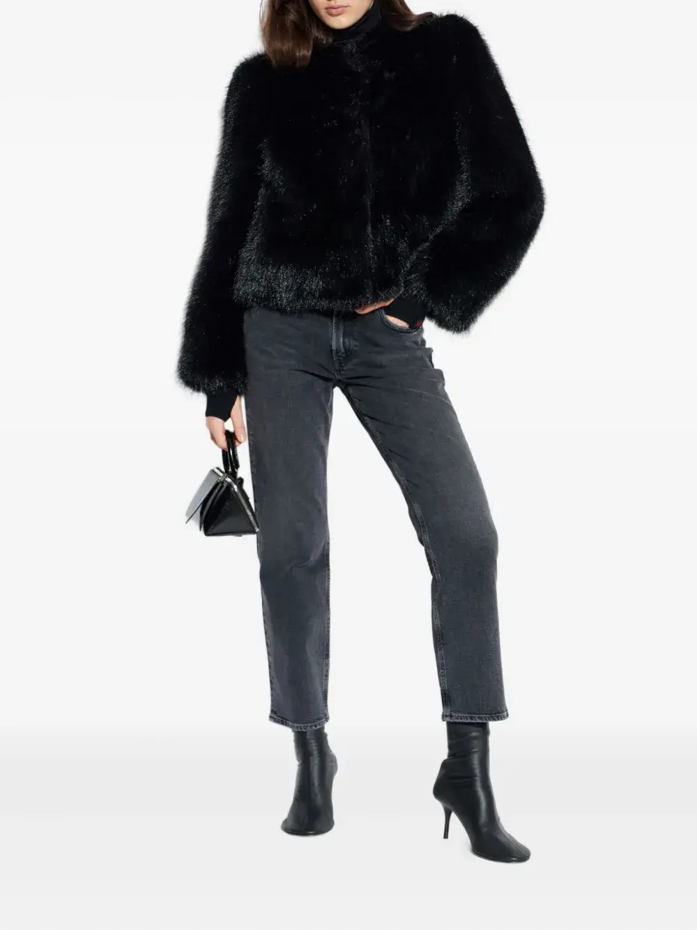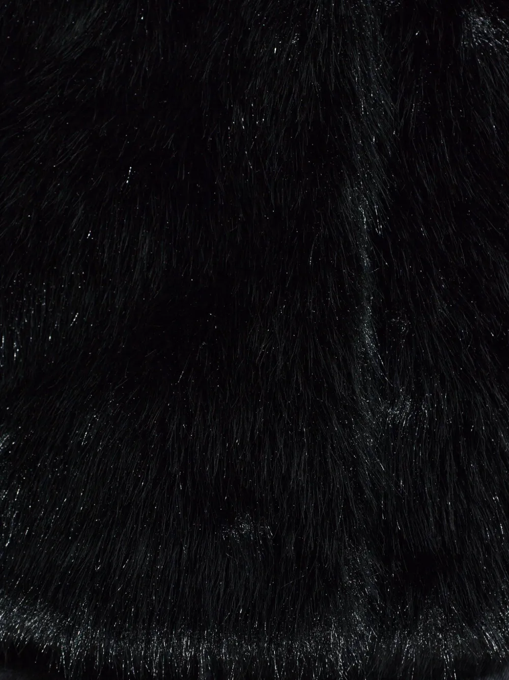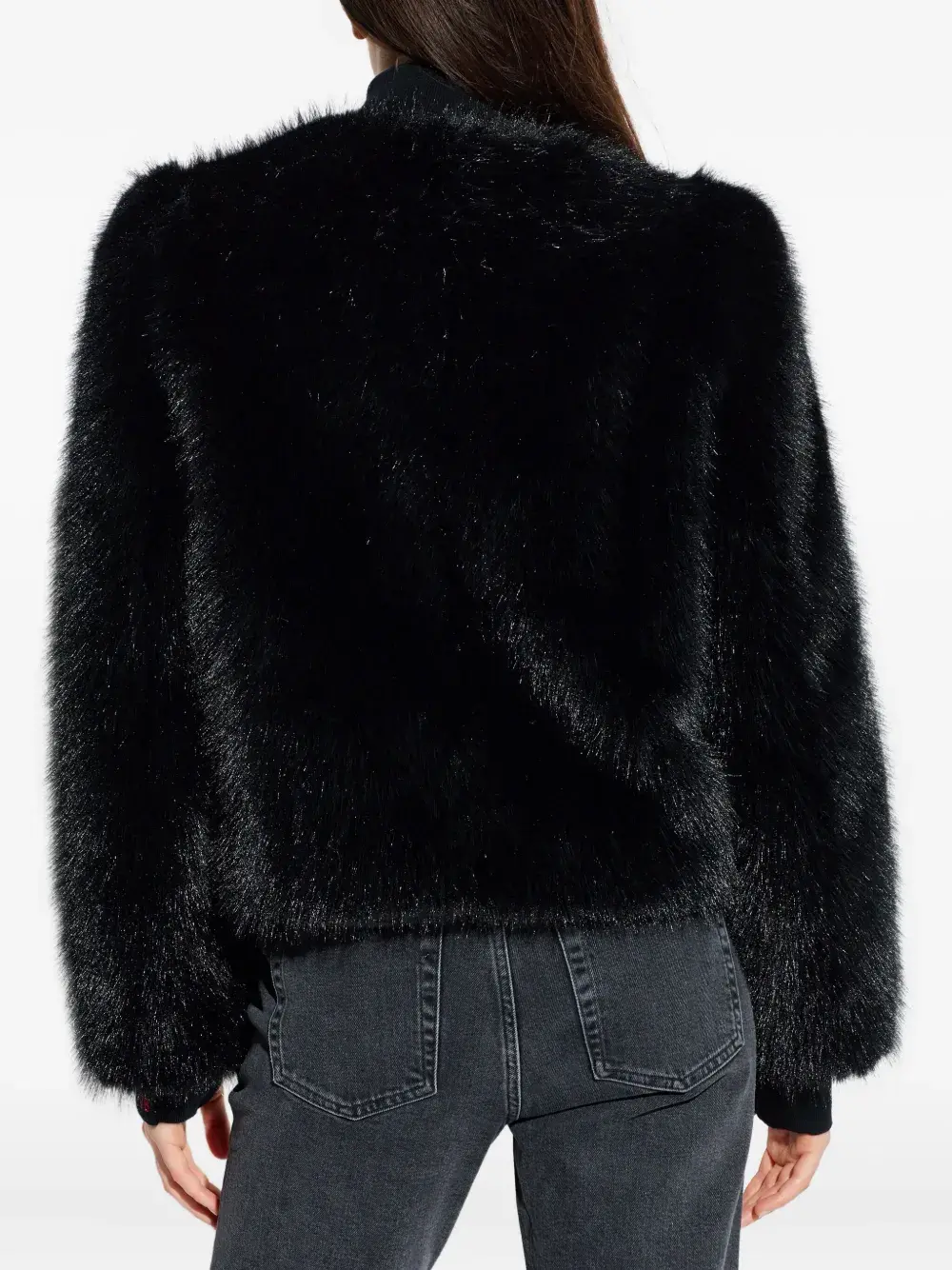 черная фактурная меховая ткань, круглый вырез, длинные рукава, застежка на молнии