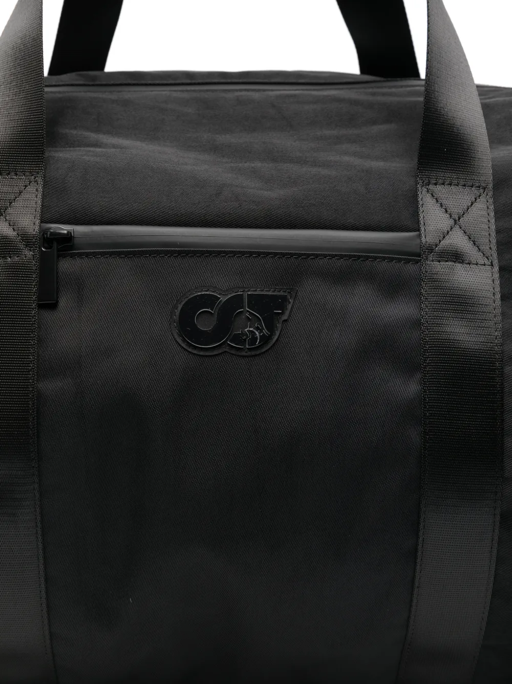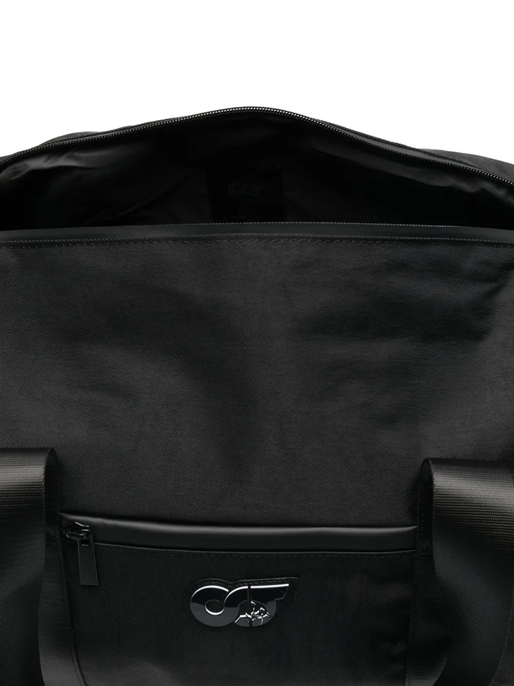 черная сумка с верхней ручкой, застежкой-молнией, деталями с логотипом, передним карманом на молнии и плечевым ремнем