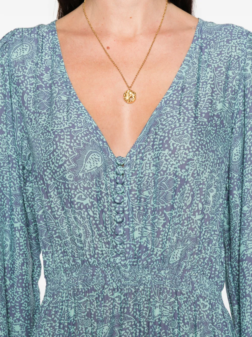 Платье Shangri с пуговицами и принтом Natalie Martin, синий