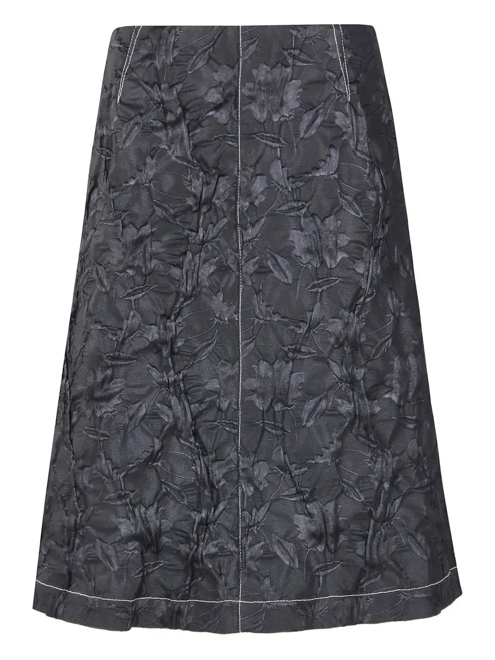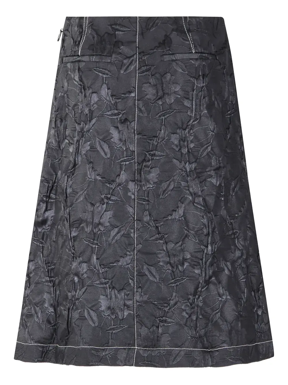 черная блузка с цветочным узором, отделкой строчкой и застежкой на молнию