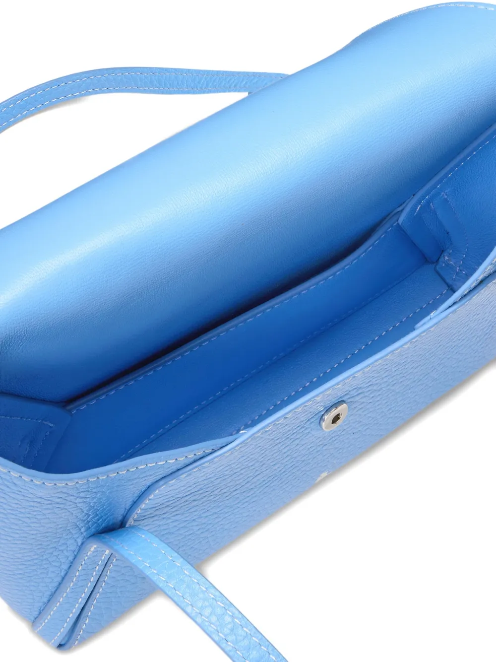 синие верхние ручки из зернистой кожи, застежка-клапан на кнопке, логотипный элемент, в комплекте идет защитный чехол для хранения