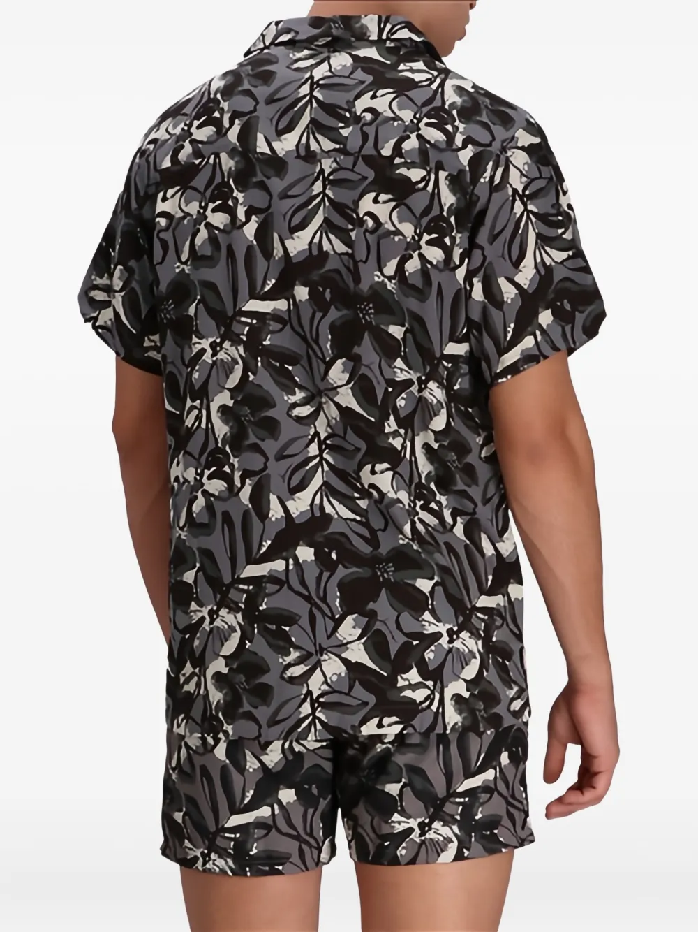 серый топ с цветочным принтом и короткими рукавами