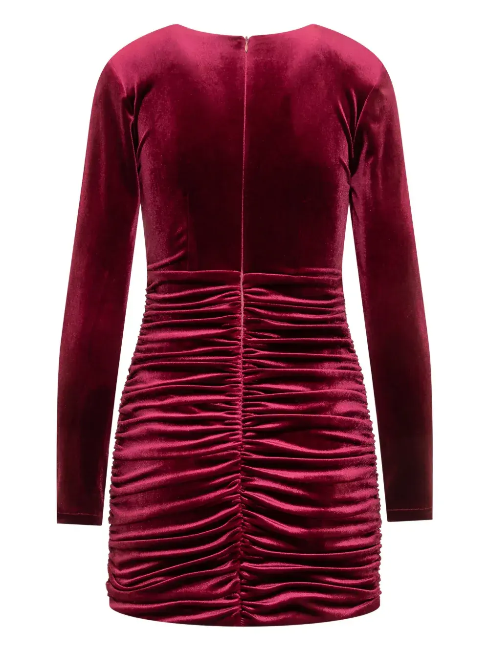 бордовый бархат, присборенные детали, длинные рукава, V-образный вырез, застежка-молния