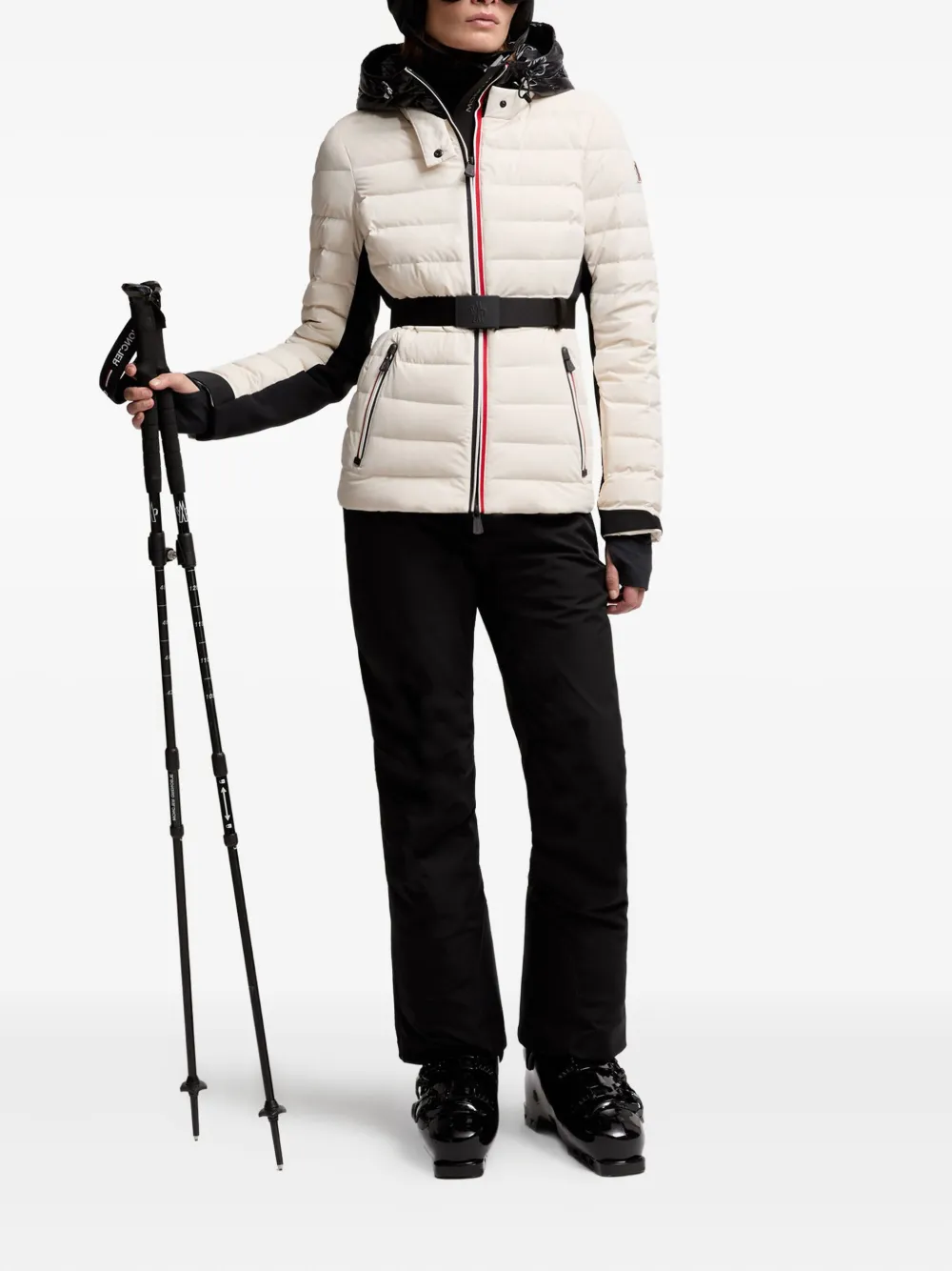 белый пуховый дизайн, регулируемый капюшон, застежка-молния, съемный пояс, регулируемые манжеты
