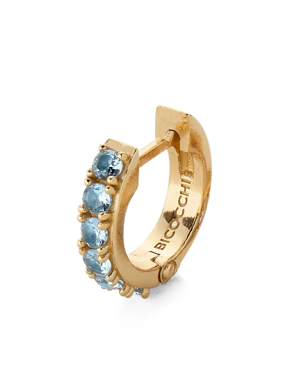 Подробнее о товаре: серьга золотистого цвета с голубыми декоративными элементами, в форме кольца, с застежкой-петлей, это одиночная серьга, при обычном ежедневном использовании и воздействии внешних факторов блеск драгоценных камней и золотых поверхностей может уменьшаться.