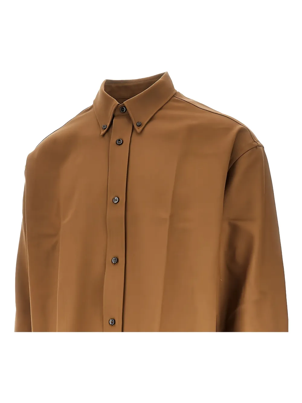 коричневая рубашка с застежкой на пуговицы, длинными рукавами и воротником на пуговицах