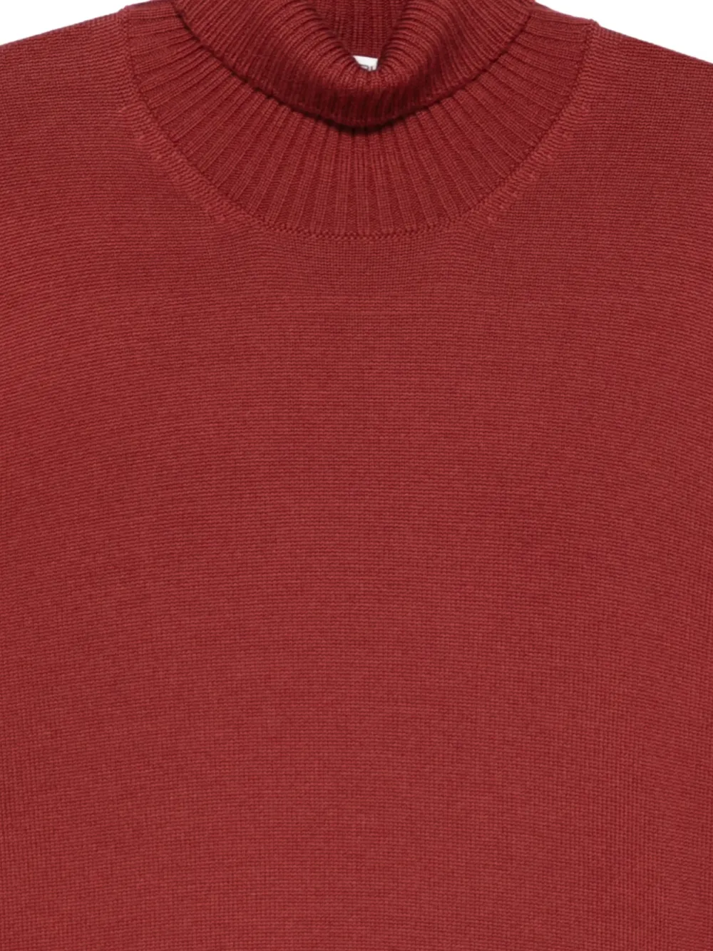 красный свитер с воротником-стойкой, длинными рукавами, ребристыми манжетами и подолом