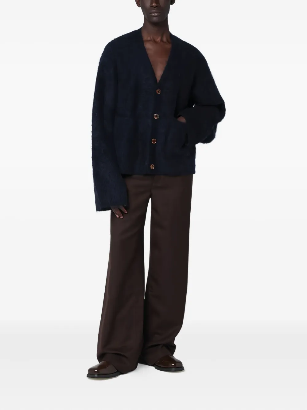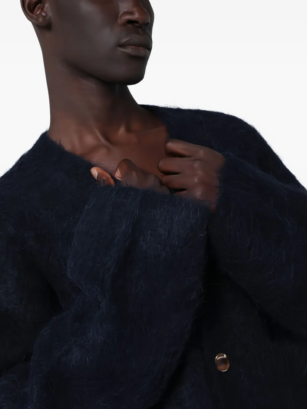 синий V-образный вырез, застежка на пуговицы спереди, длинные рукава, передние карманы