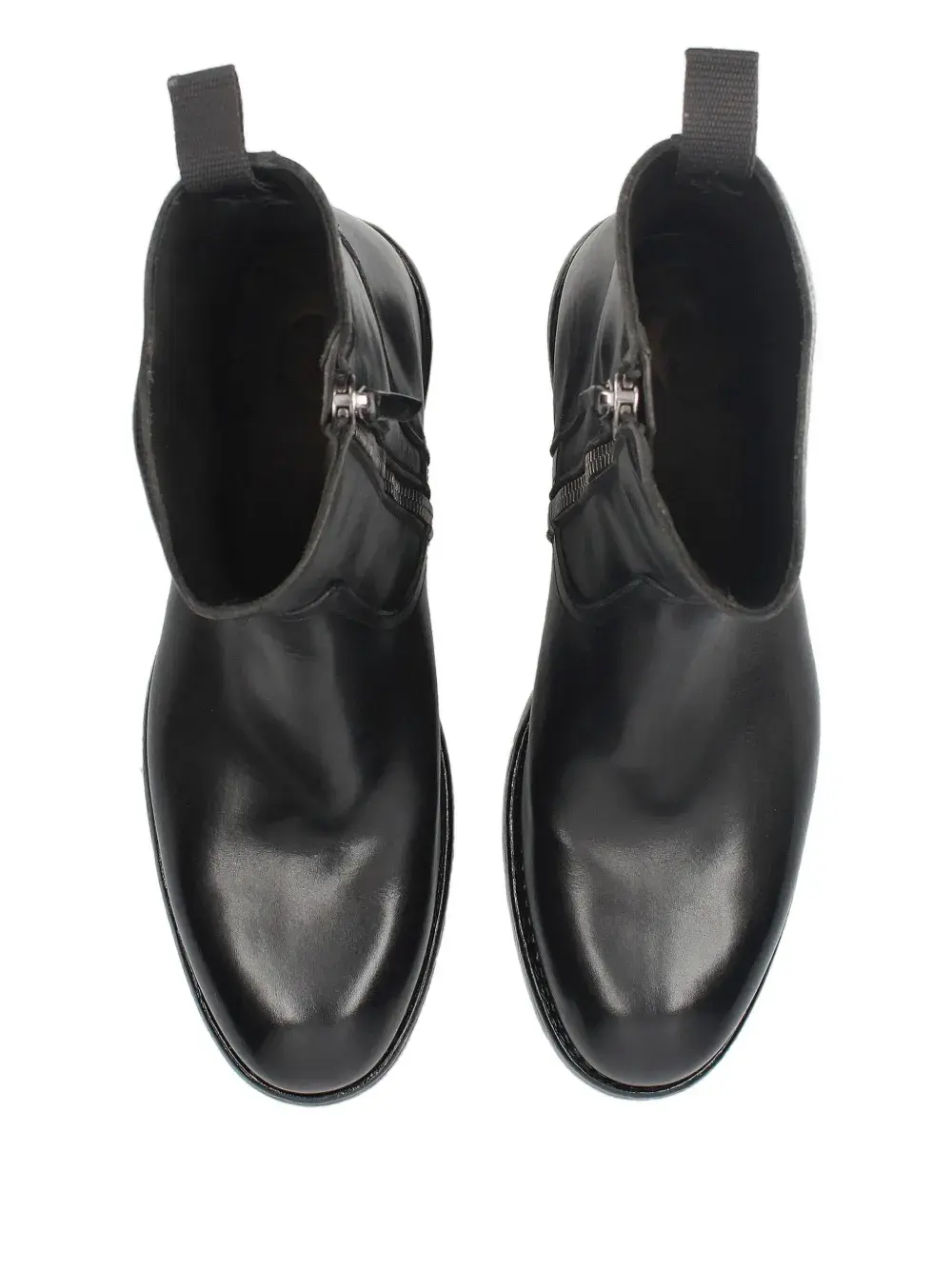 черная телячья кожа, застежка-молния, язычок для застегивания, кубинский каблук, круглый носок