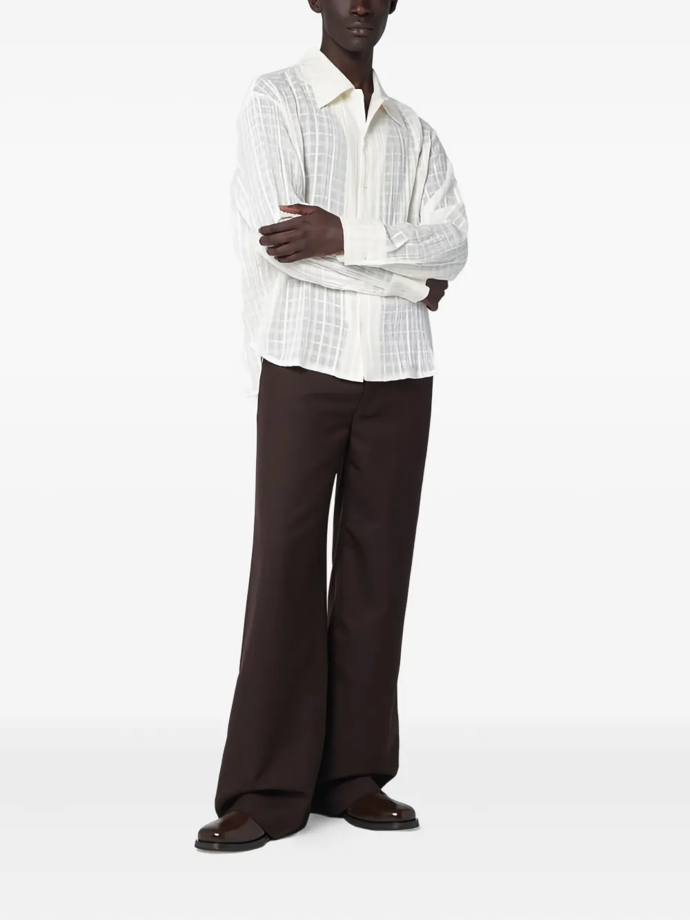 облачный белый цвет, узор в клетку, застегивается на пуговицы, длинные рукава, манжеты на пуговицах, классический воротник