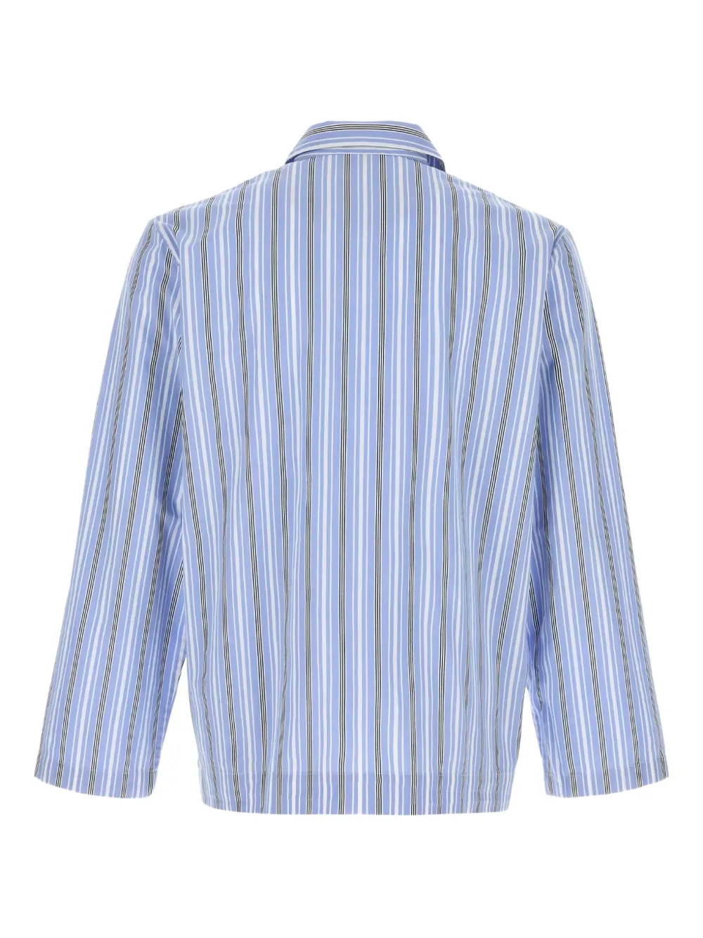 светло-голубая рубашка из органического хлопка в полоску с вышивкой, нагрудным карманом и длинными рукавами из поплина