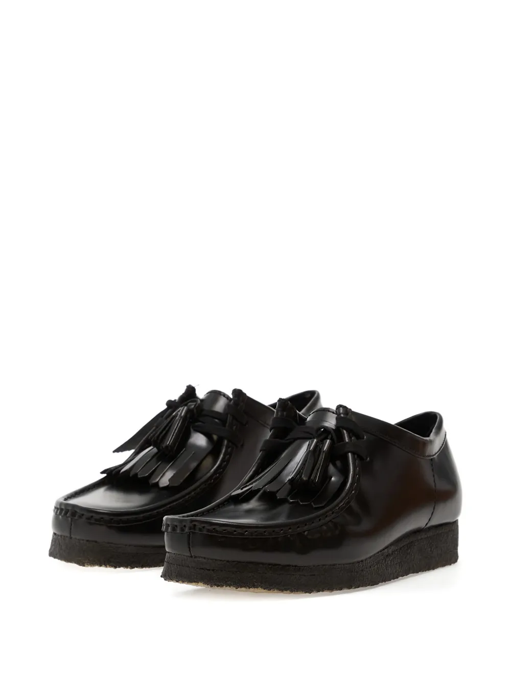 черные туфли на шнуровке с кисточками, отделкой строчкой и круглым носком