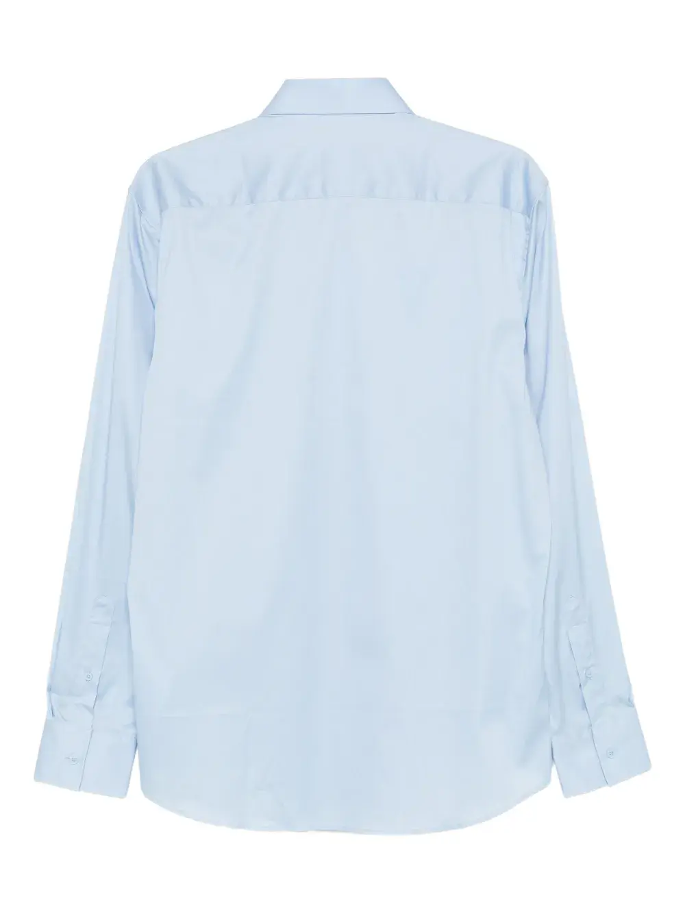 светло-голубой цвет, принт с логотипом, застёжка на пуговицы, длинные рукава, манжеты на пуговицах