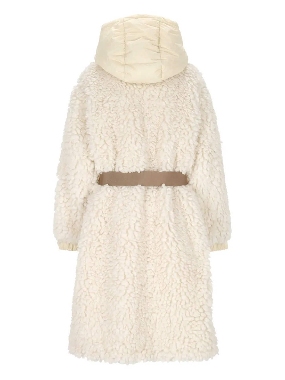 Пальто с капюшоном и поясом Moncler Grenoble, кремовый