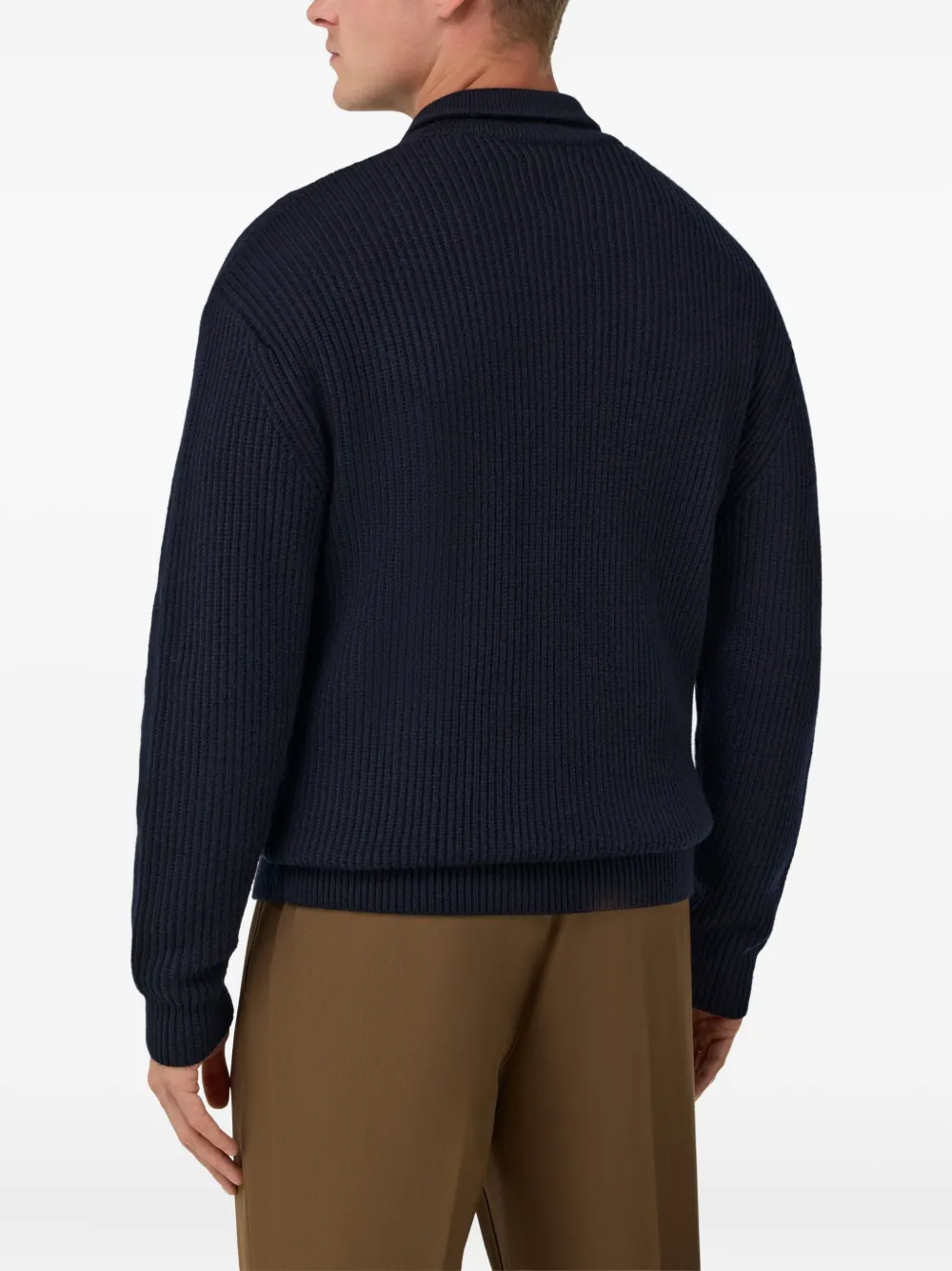 темно-синяя рубашка из ребристого трикотажа с воротником, застежкой на пуговицы, из мериносовой шерсти