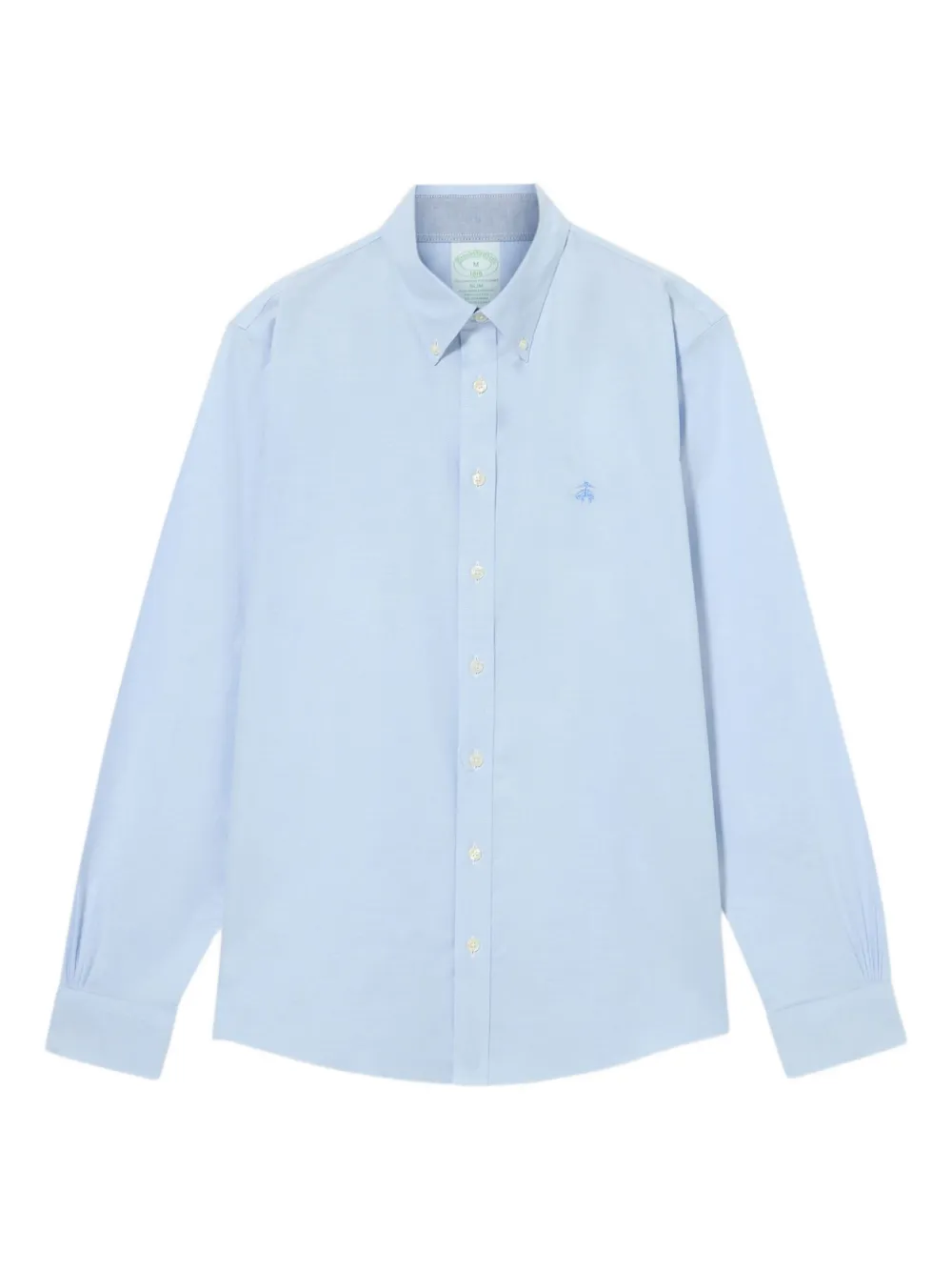 светло-голубая рубашка из оксфордской ткани с застежкой на пуговицы и длинными рукавами