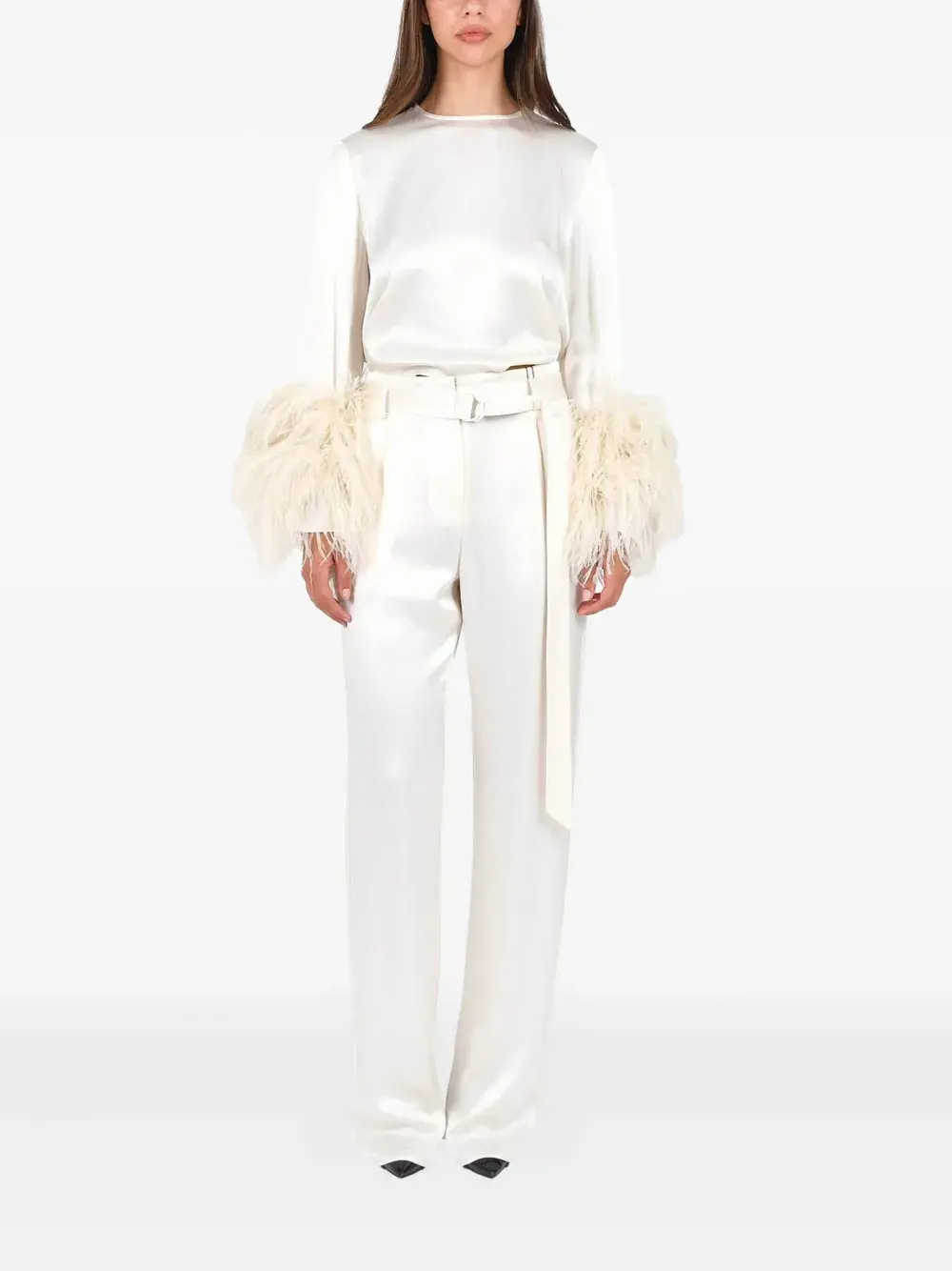 Блузка с манжетами из страусиных перьев Lapointe, кремовый