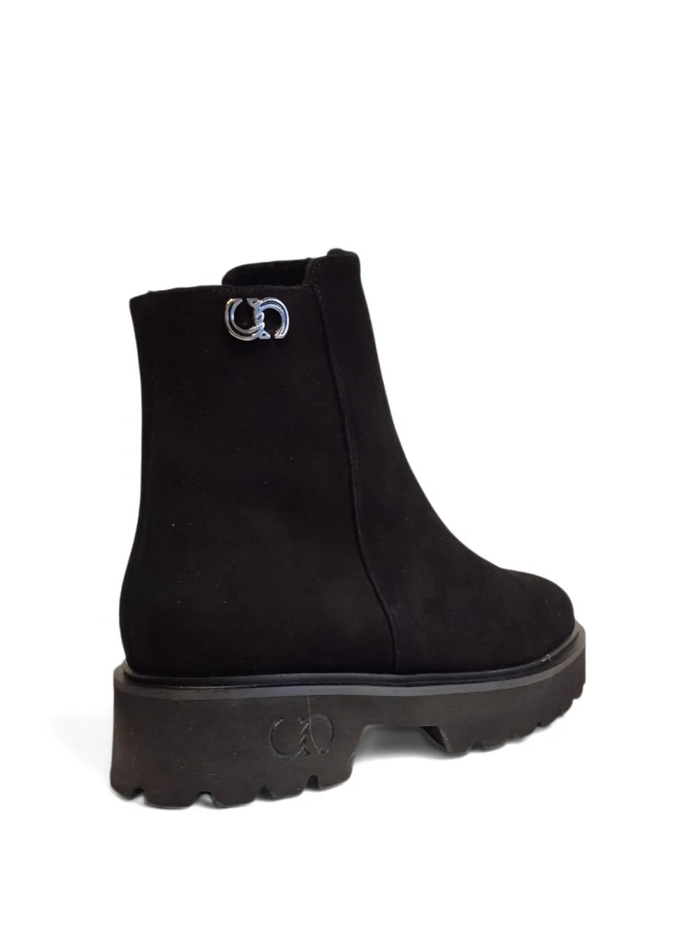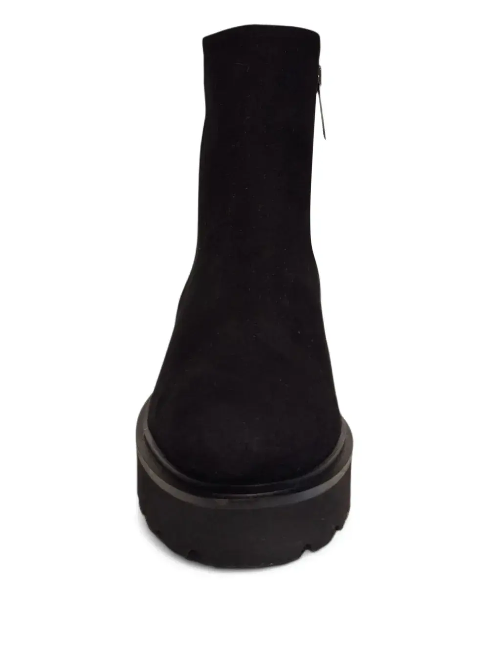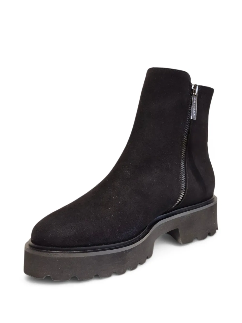 черные ботинки с логотипом, застежкой-молнией и массивной подошвой, длина до щиколотки