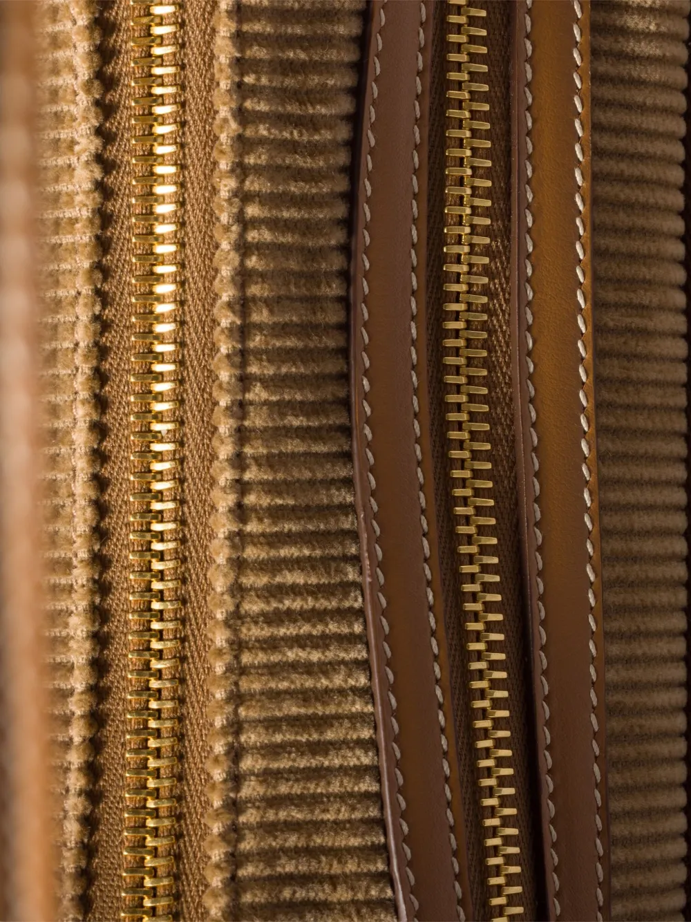 коричневая фактура вельвета, ручка из наппа-кожи, передний карман, боковые карманы с клапанами, пряжки, фурнитура золотистого цвета