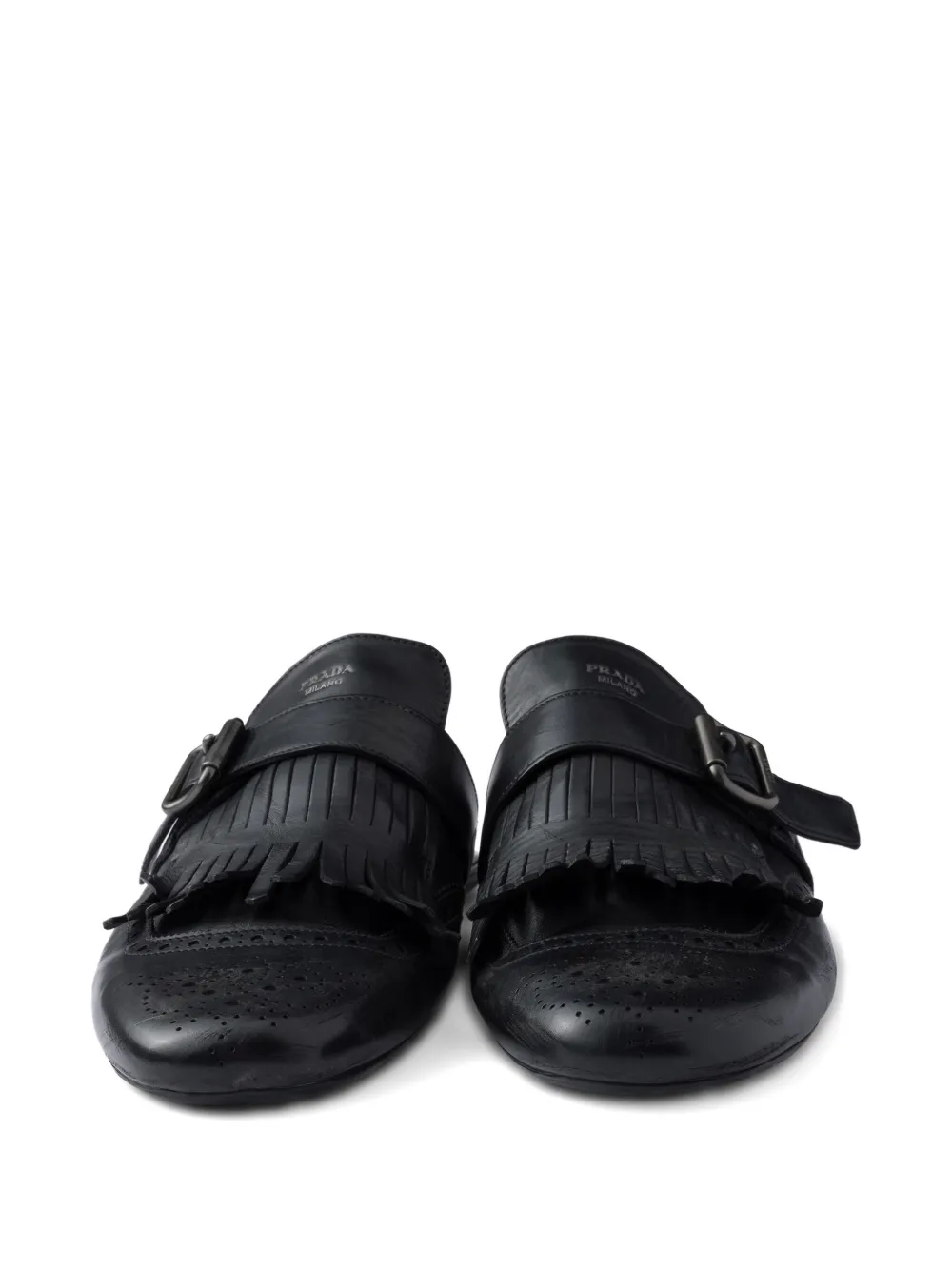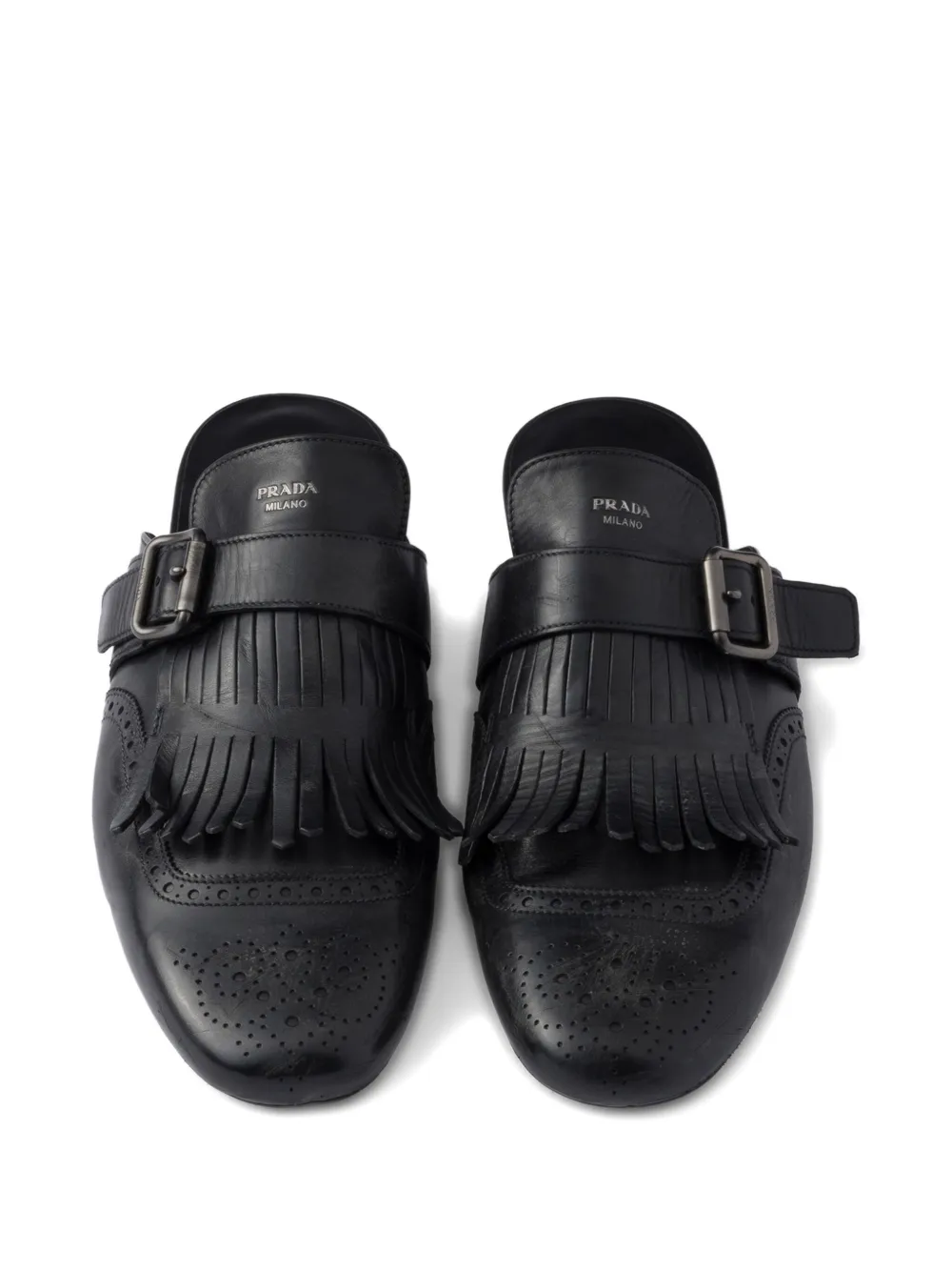 Мюли Shuffle с перфорацией и бахромой Prada, черный