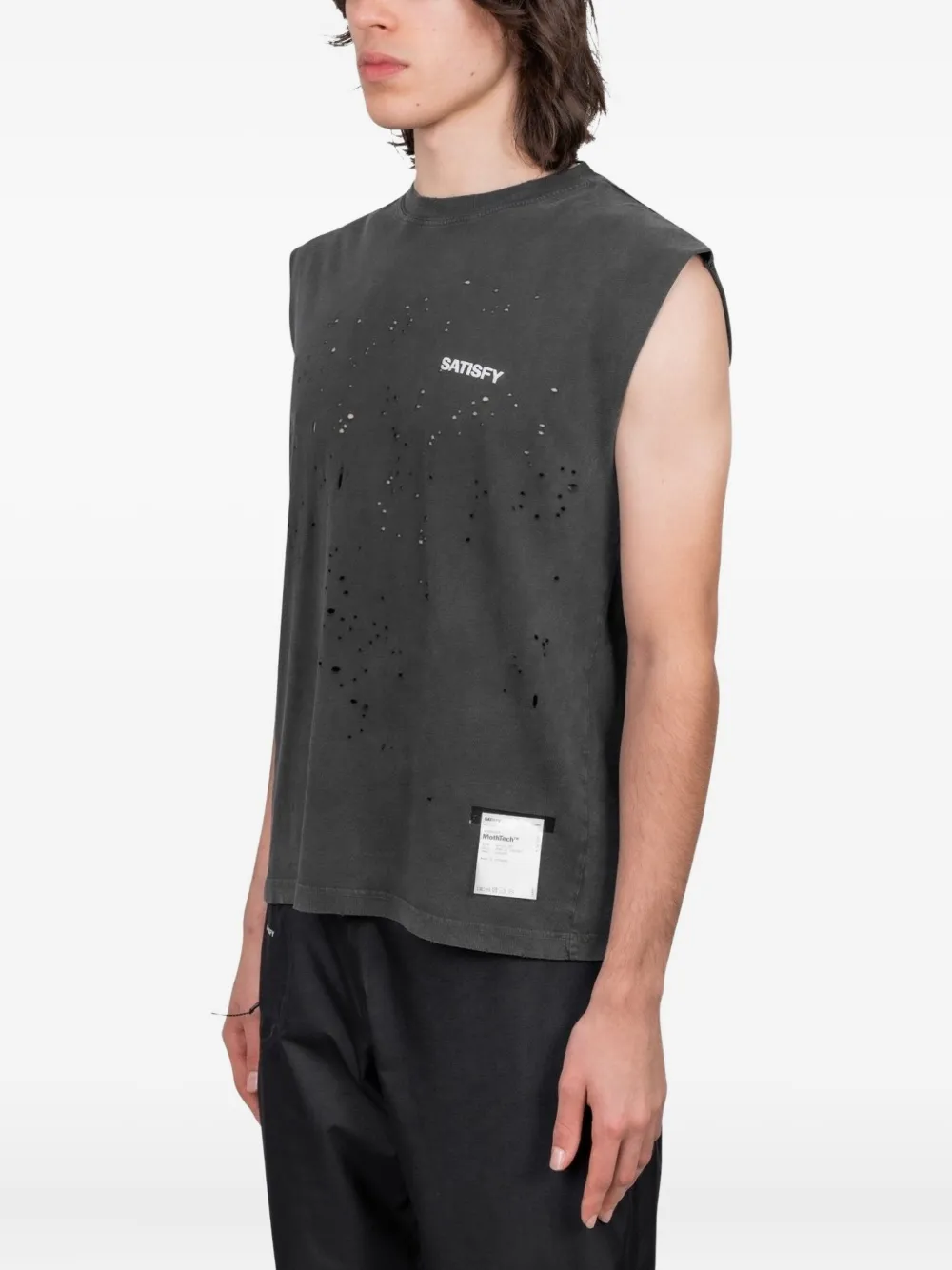 потертый черный топ без рукавов с эффектом состаривания, логотипом, круглым вырезом и нашивкой