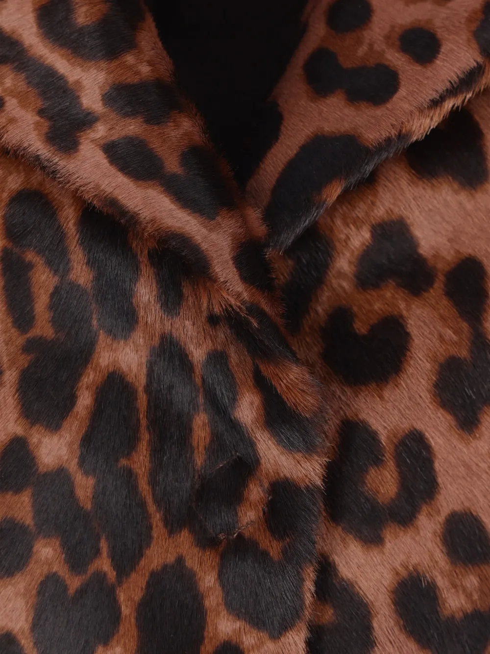 коричневый с леопардовым эффектом, классические лацканы, скрытая застежка спереди, передние клапанные карманы, длинные рукава