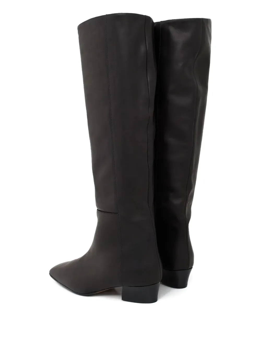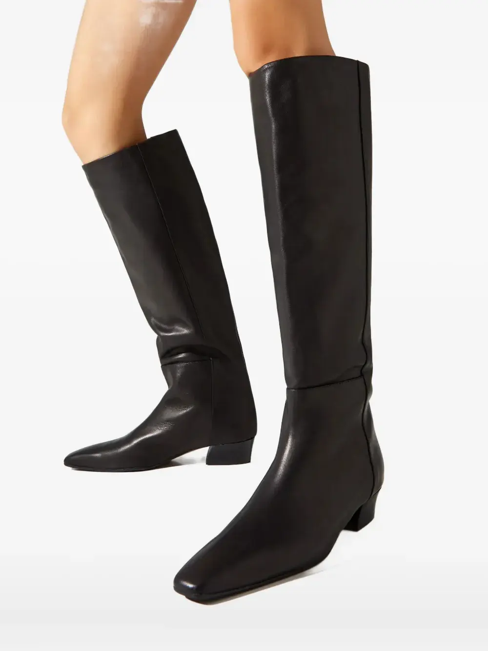 черные сапоги до колена на квадратном каблуке с квадратным носком