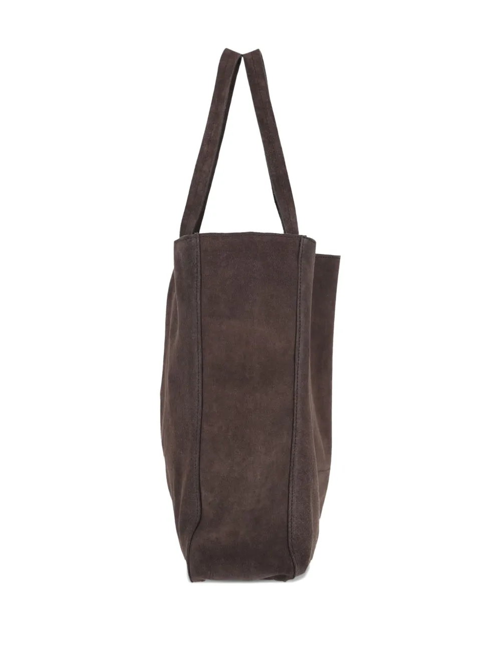 коричневая сумка с верхней ручкой, внутренним карманом, прямоугольной формой и открытым верхом