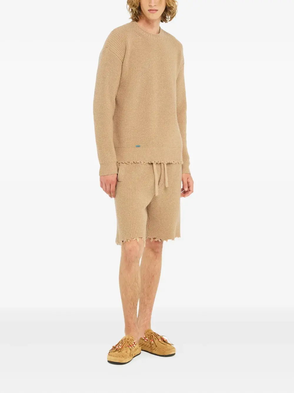 Свитер в рубчик с бахромой Alanui, бежевый