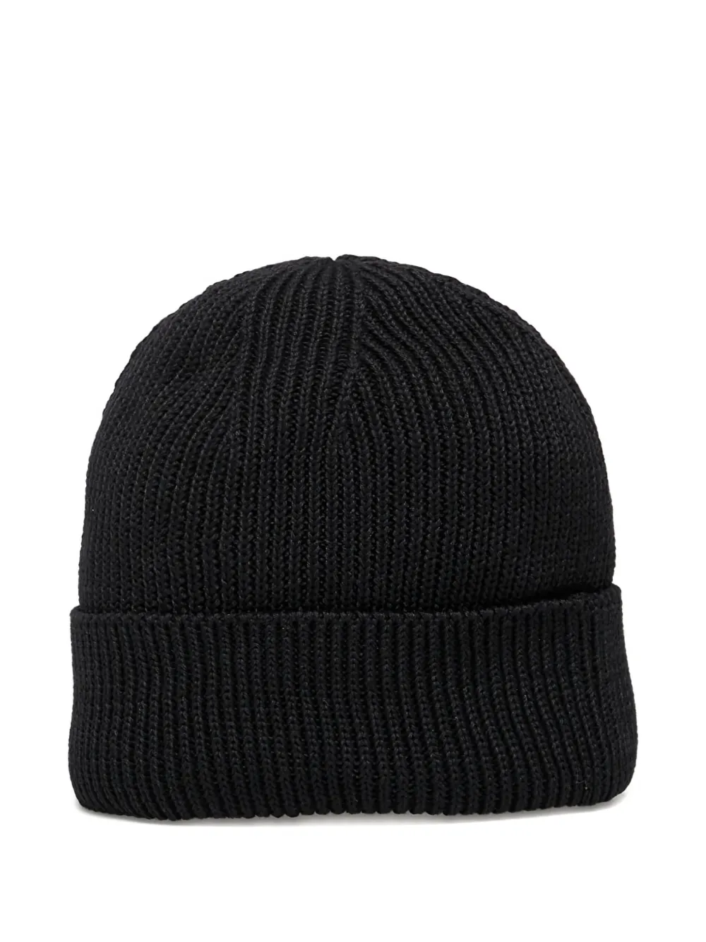 черная вязаная шапка в рубчик с тональным логотипом и отворотом